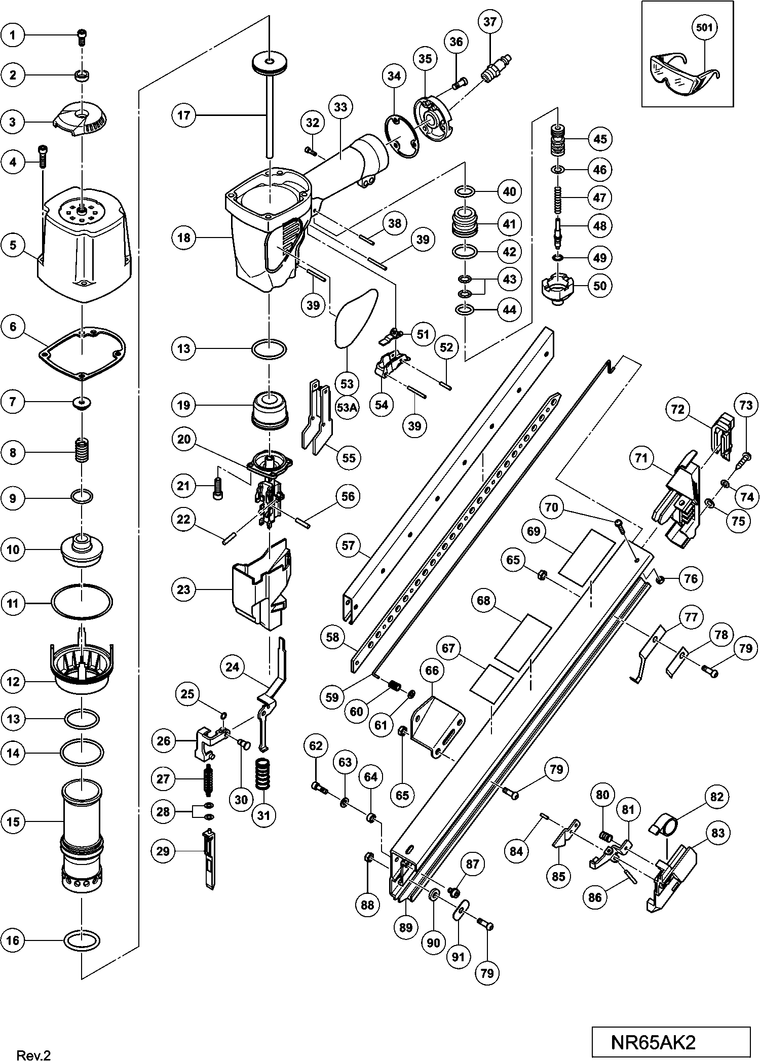 Onderdelen lijst van de Hikoki NR65AK2