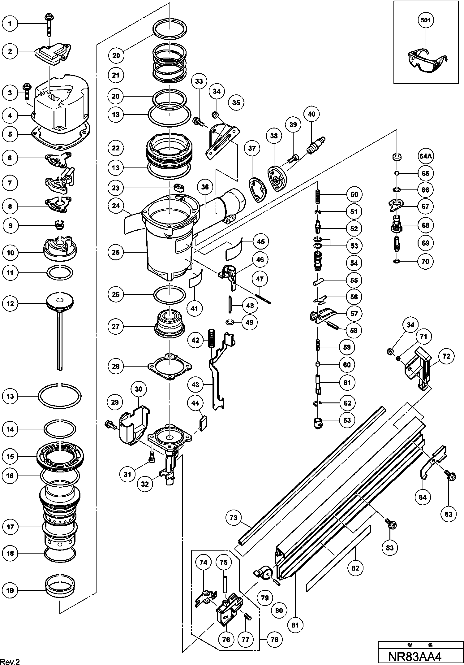 Onderdelen lijst van de Hikoki NR83AA4