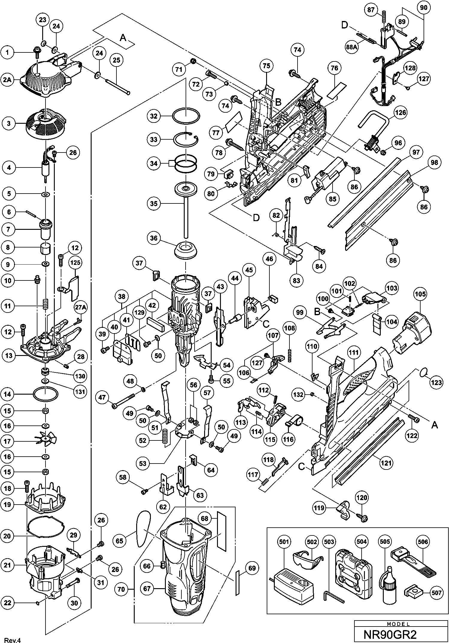 Hier vindt u alle beschikbare onderdelen en tekeningen van de 'Hikoki NR90GR2'. Vanaf hier kunt u direct alle gewenste onderdelen bestellen. Vele onderdelen moeten bij de fabrikant besteld worden, dit duurt afhankelijk van het merk, één tot vier weken. Alle informatie die we hebben, staat op onze website, wij kunnen u geen advies geven over wat u nodig heeft, daarvoor zult u de machine ter reparatie in moeten leveren. Let bij het bestellen op het volgende: