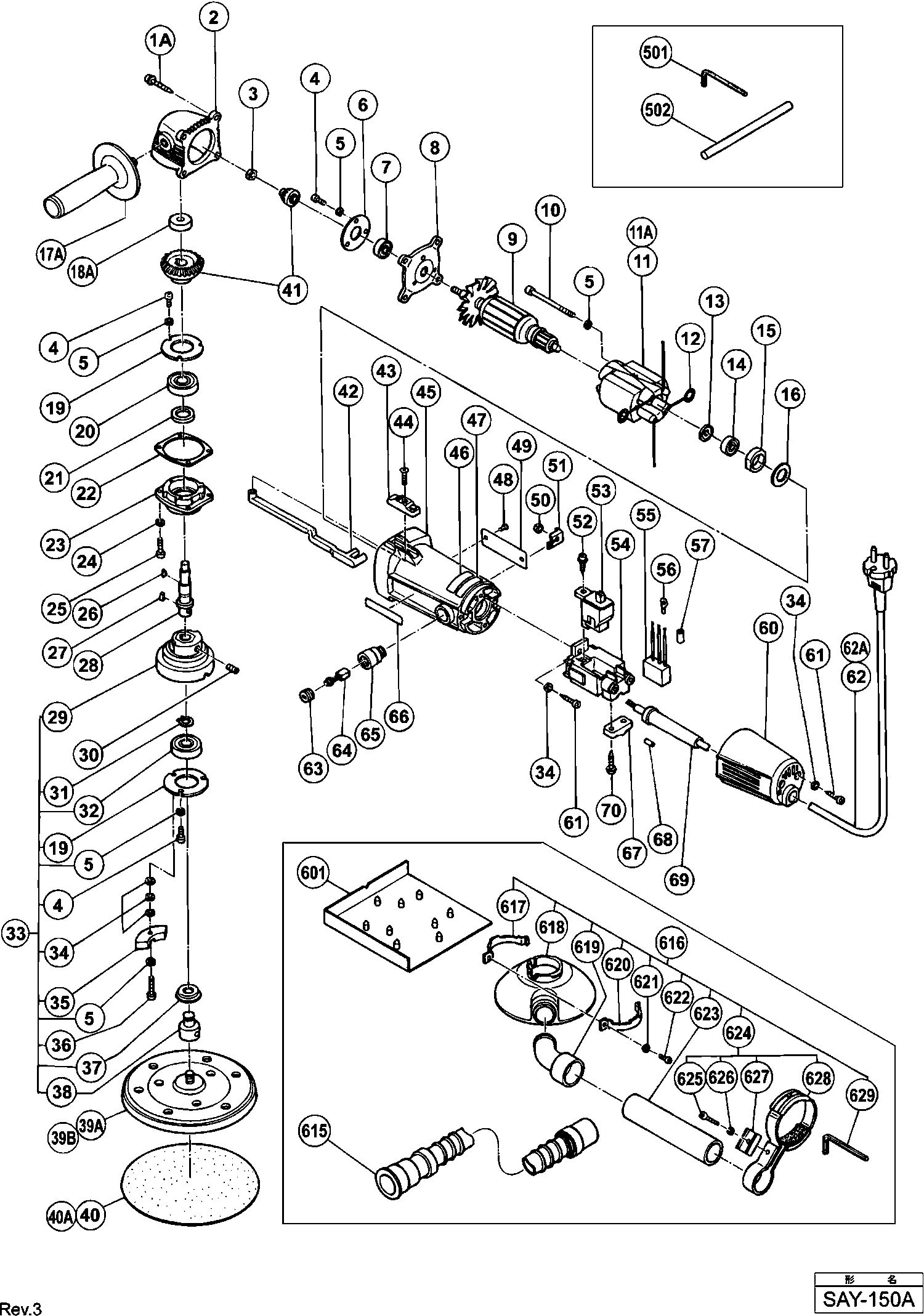 Onderdelen lijst van de Hikoki SAY-150A