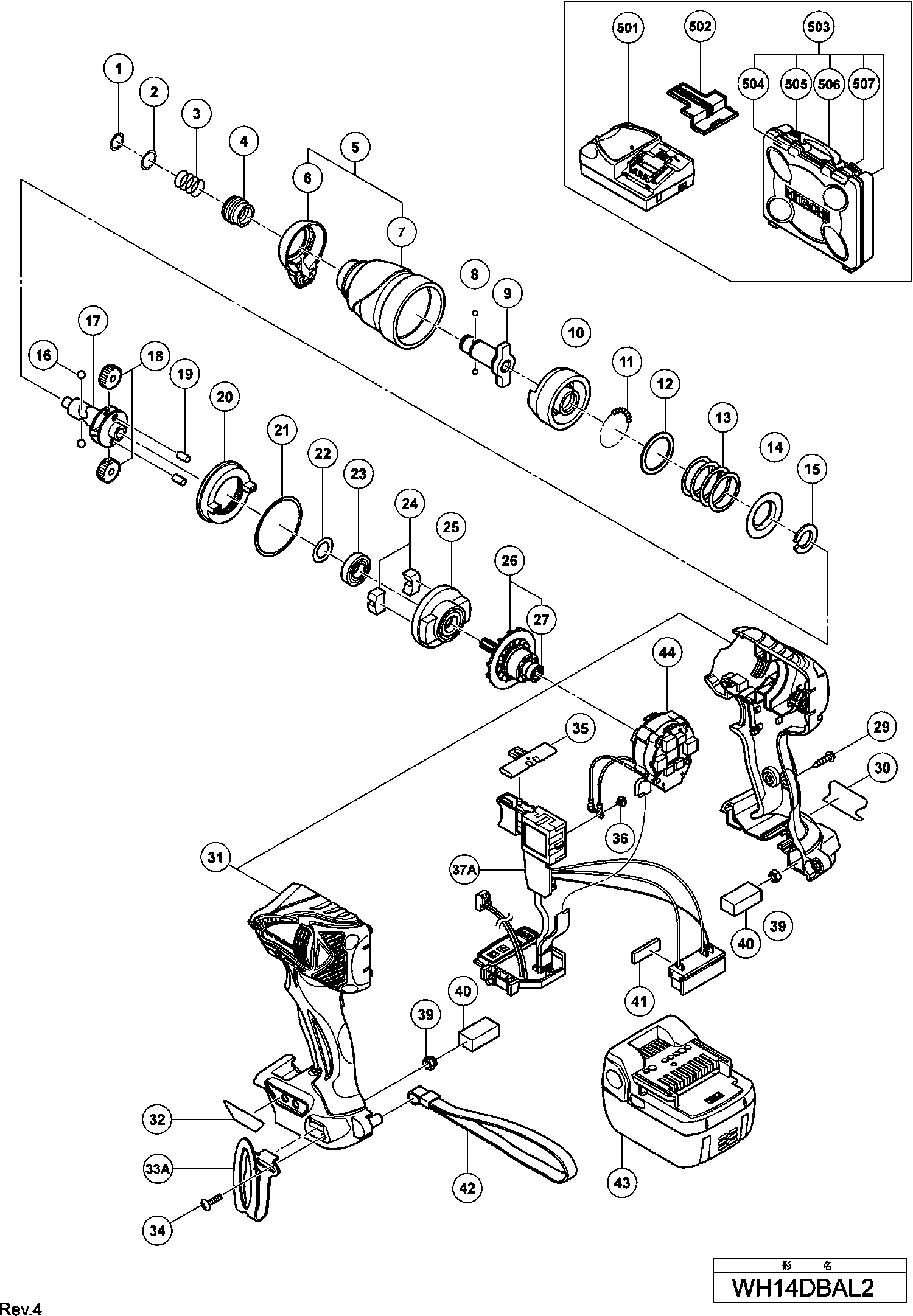 Onderdelen lijst van de Hikoki WH14DBAL2