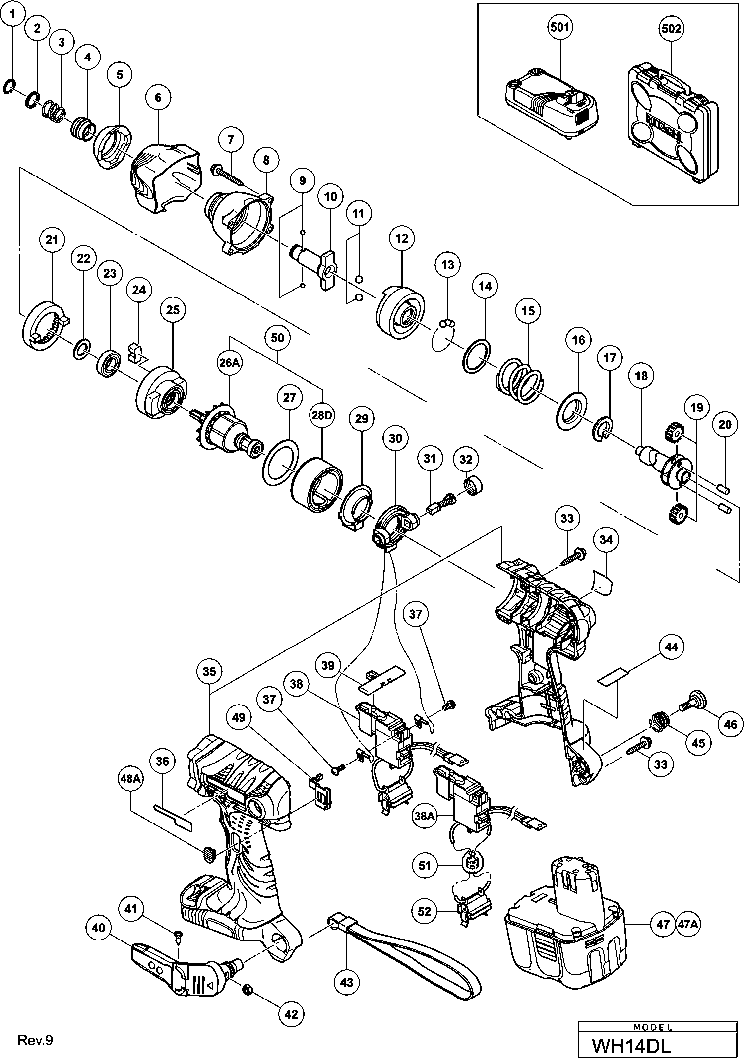 Onderdelen lijst van de Hikoki WH14DL