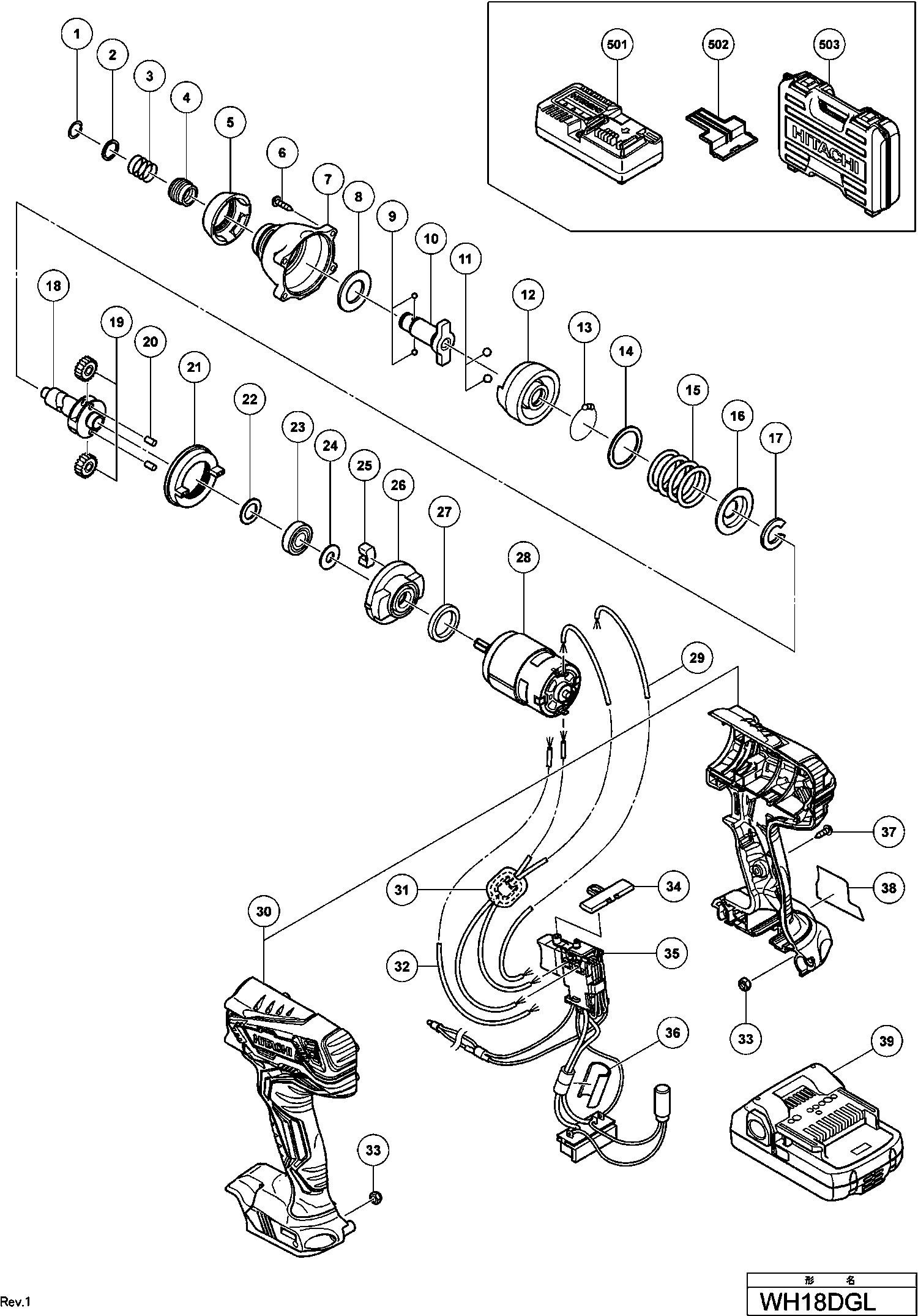 Hier vindt u alle beschikbare onderdelen en tekeningen van de 'Hikoki WH18DGL'. Vanaf hier kunt u direct alle gewenste onderdelen bestellen. Vele onderdelen moeten bij de fabrikant besteld worden, dit duurt afhankelijk van het merk, één tot vier weken. Alle informatie die we hebben, staat op onze website, wij kunnen u geen advies geven over wat u nodig heeft, daarvoor zult u de machine ter reparatie in moeten leveren. Let bij het bestellen op het volgende: