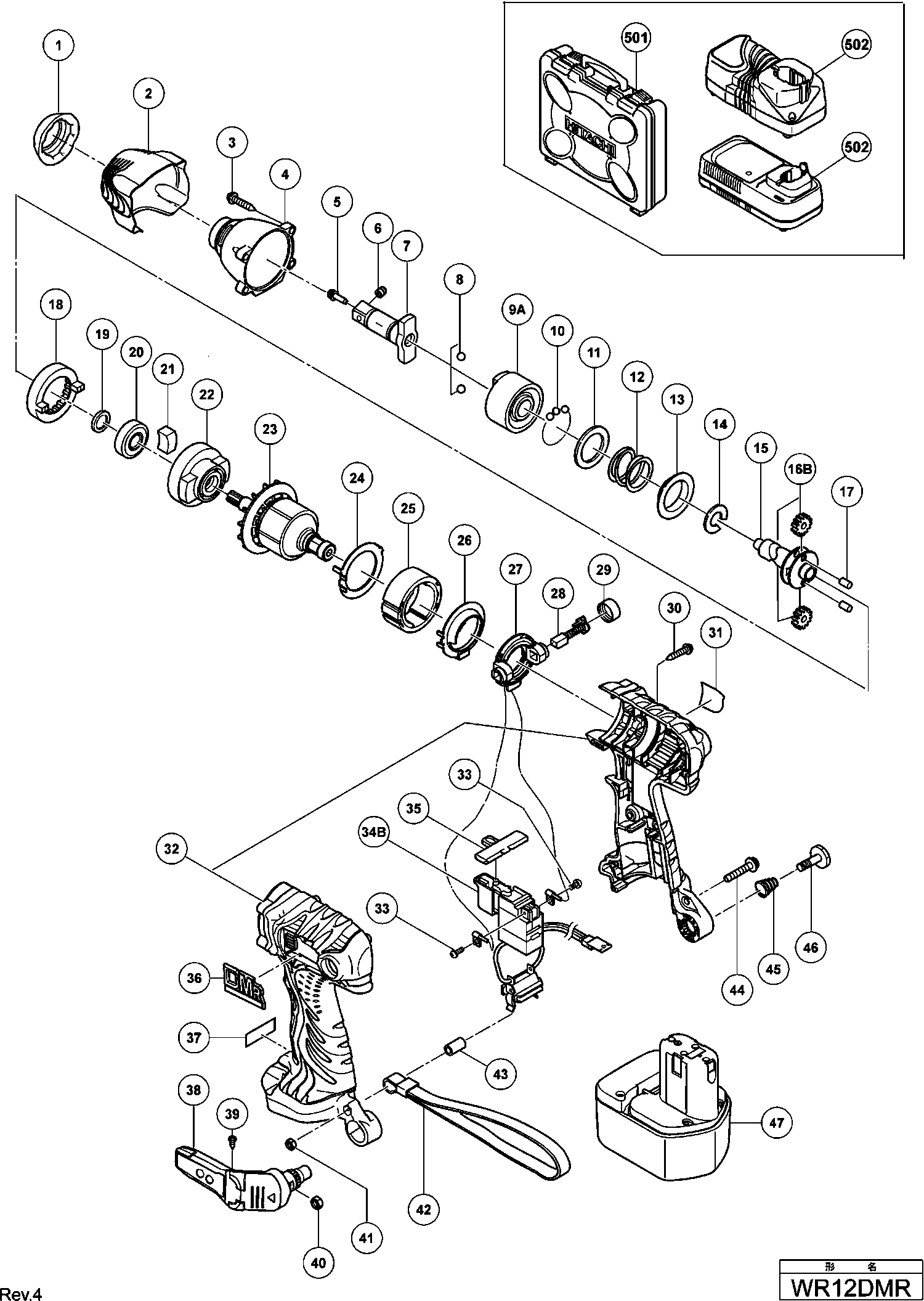 Onderdelen lijst van de Hikoki WR12DMR