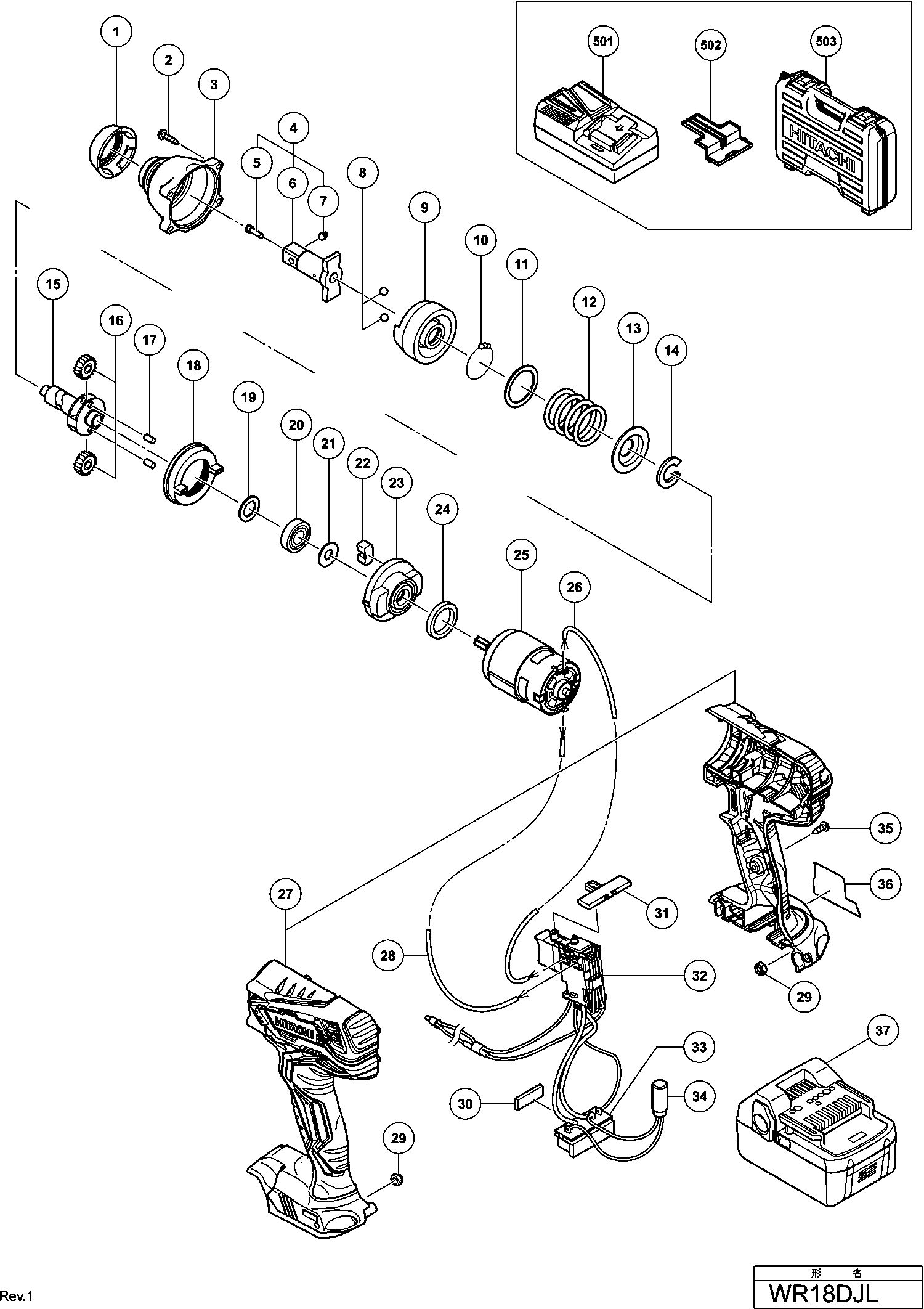 Onderdelen lijst van de Hikoki WR18DJL