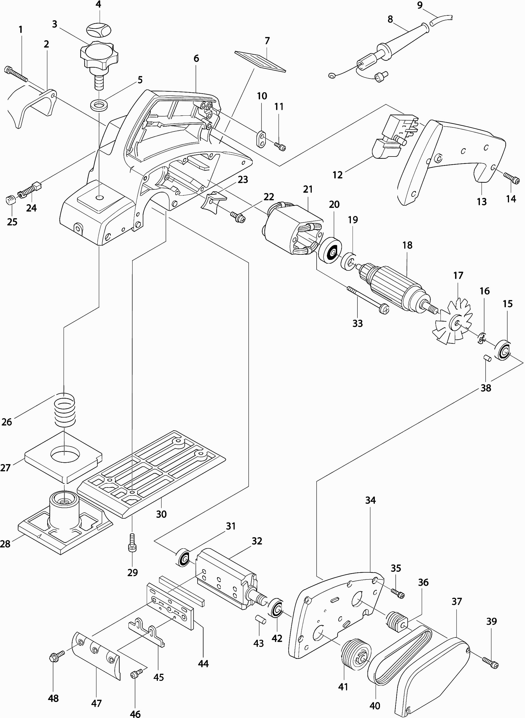 Hier vindt u alle beschikbare onderdelen en tekeningen van de 'Makita 1902'. Vanaf hier kunt u direct alle gewenste onderdelen bestellen. Vele onderdelen moeten bij de fabrikant besteld worden, dit duurt afhankelijk van het merk, één tot vier weken. Alle informatie die we hebben, staat op onze website, wij kunnen u geen advies geven over wat u nodig heeft, daarvoor zult u de machine ter reparatie in moeten leveren. Let bij het bestellen op het volgende: