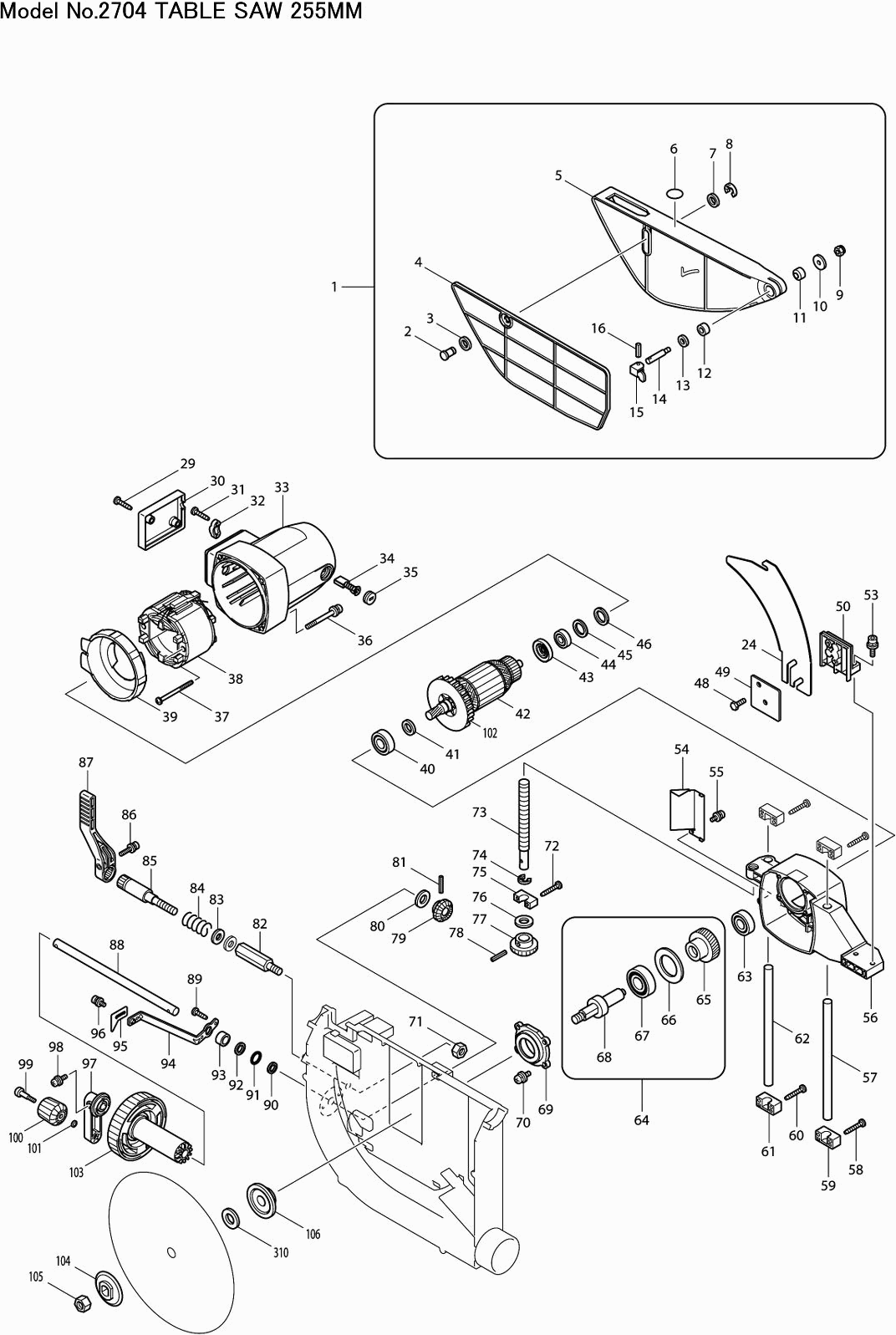 Onderdelen lijst van de Makita 2704