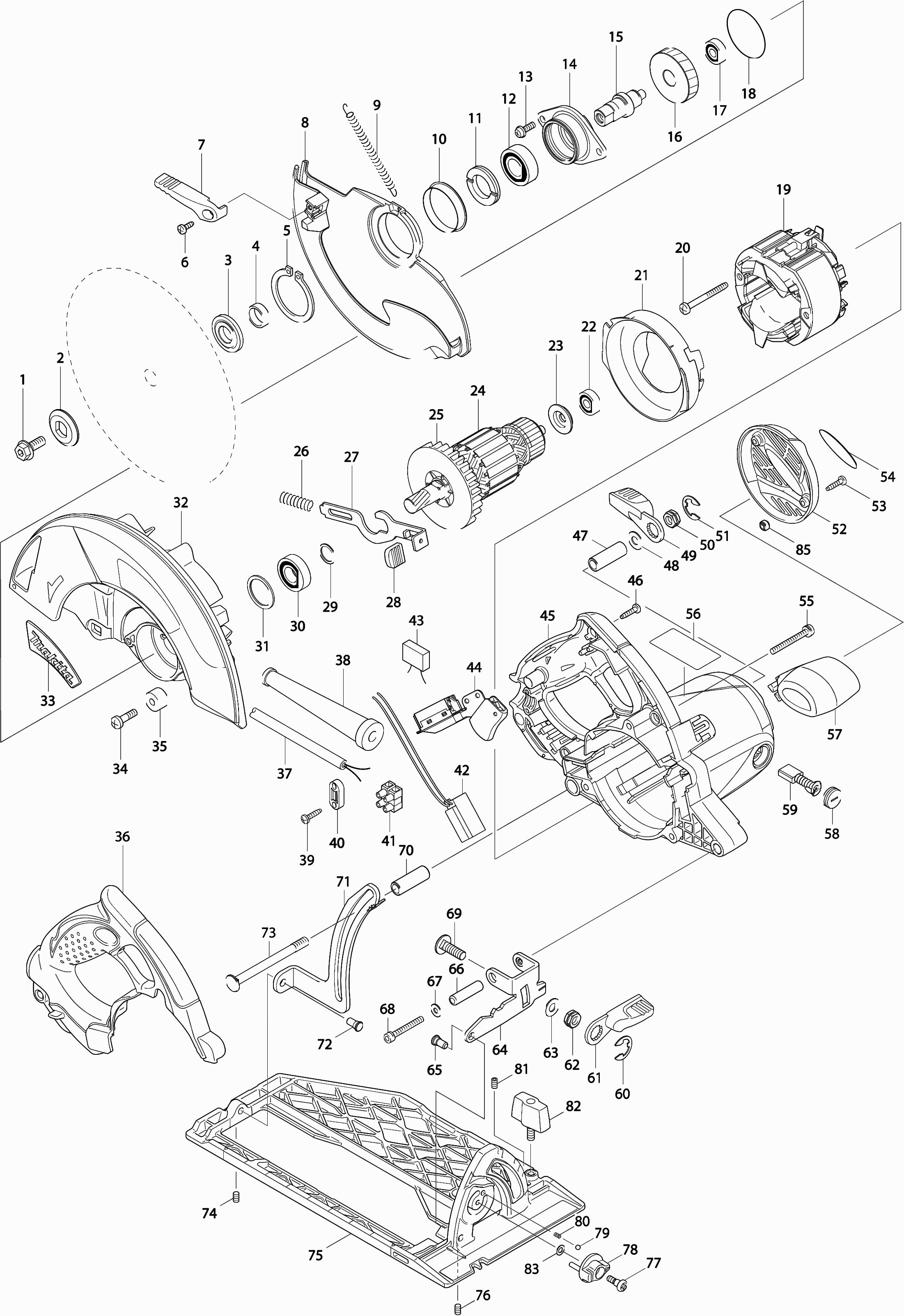 Onderdelen lijst van de Makita 5008MG