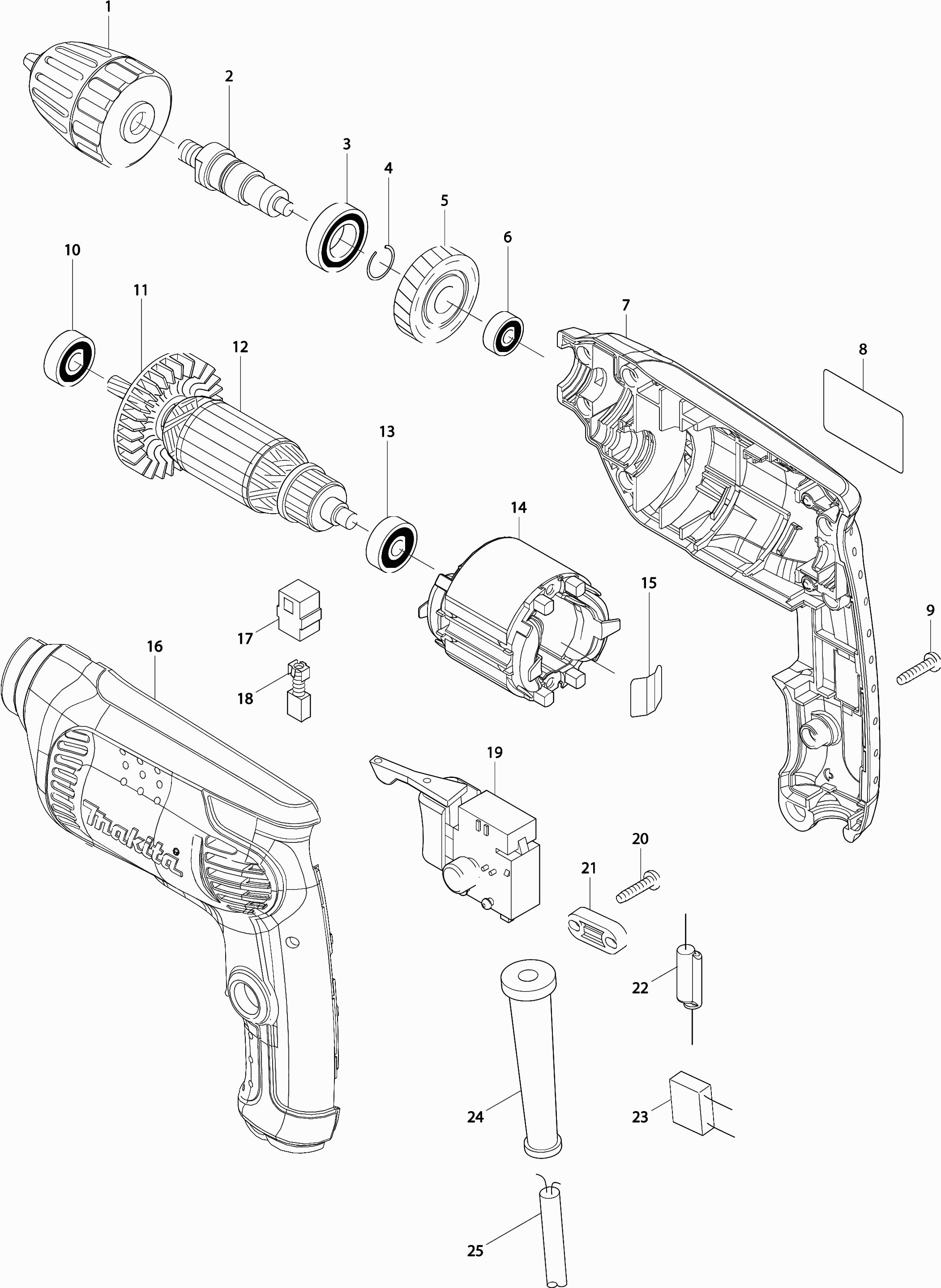 Hier vindt u alle beschikbare onderdelen en tekeningen van de 'Makita 6413'. Vanaf hier kunt u direct alle gewenste onderdelen bestellen. Vele onderdelen moeten bij de fabrikant besteld worden, dit duurt afhankelijk van het merk, één tot vier weken. Alle informatie die we hebben, staat op onze website, wij kunnen u geen advies geven over wat u nodig heeft, daarvoor zult u de machine ter reparatie in moeten leveren. Let bij het bestellen op het volgende: