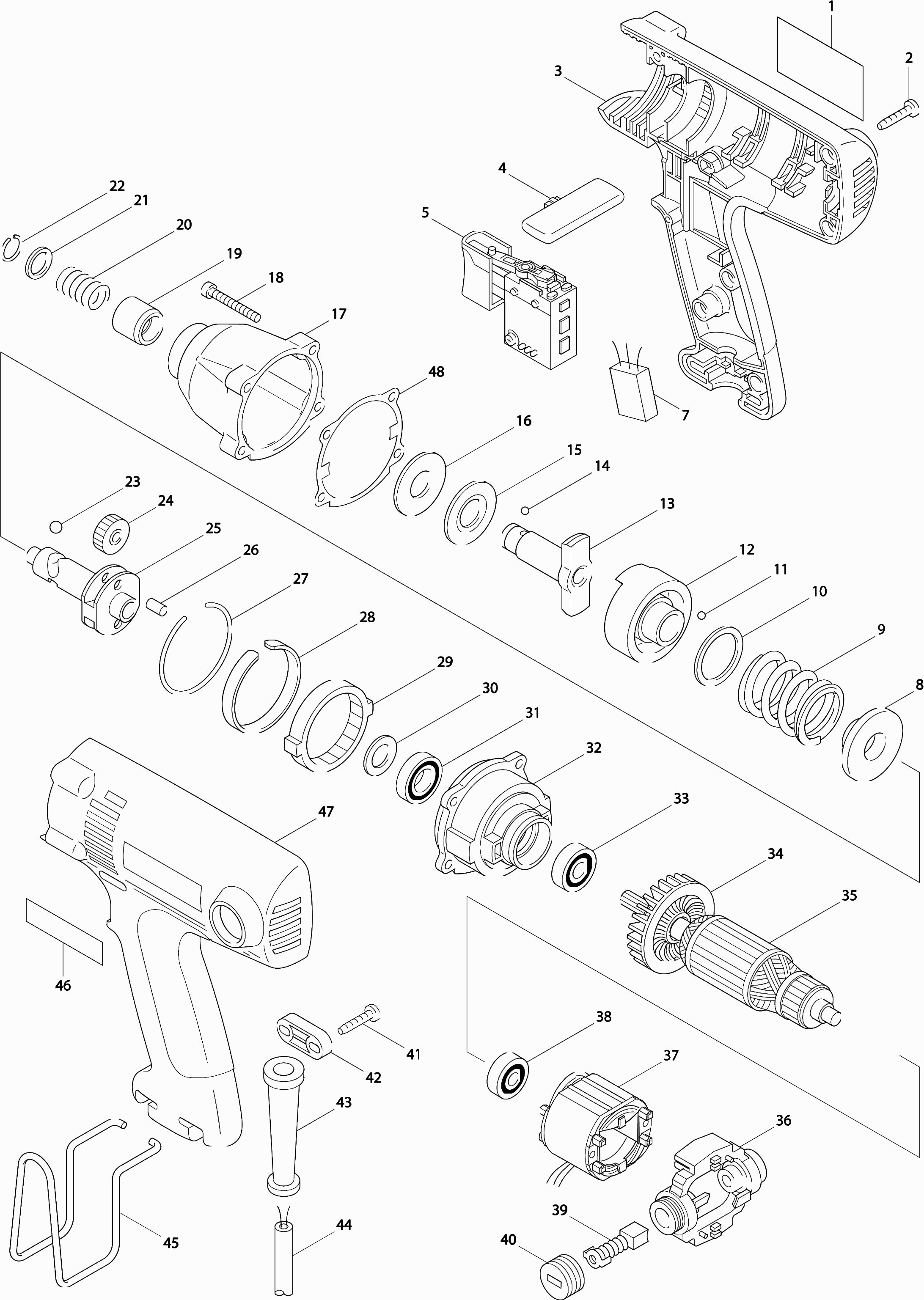 Hier vindt u alle beschikbare onderdelen en tekeningen van de 'Makita 6952'. Vanaf hier kunt u direct alle gewenste onderdelen bestellen. Vele onderdelen moeten bij de fabrikant besteld worden, dit duurt afhankelijk van het merk, één tot vier weken. Alle informatie die we hebben, staat op onze website, wij kunnen u geen advies geven over wat u nodig heeft, daarvoor zult u de machine ter reparatie in moeten leveren. Let bij het bestellen op het volgende: