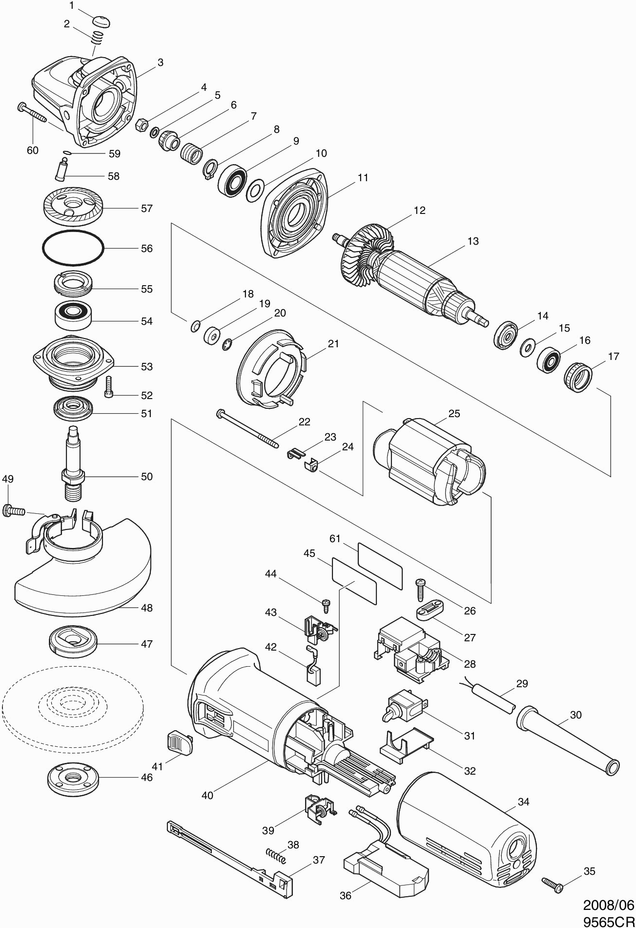 Hier vindt u alle beschikbare onderdelen en tekeningen van de 'Makita 9565CR'. Vanaf hier kunt u direct alle gewenste onderdelen bestellen. Vele onderdelen moeten bij de fabrikant besteld worden, dit duurt afhankelijk van het merk, één tot vier weken. Alle informatie die we hebben, staat op onze website, wij kunnen u geen advies geven over wat u nodig heeft, daarvoor zult u de machine ter reparatie in moeten leveren. Let bij het bestellen op het volgende: