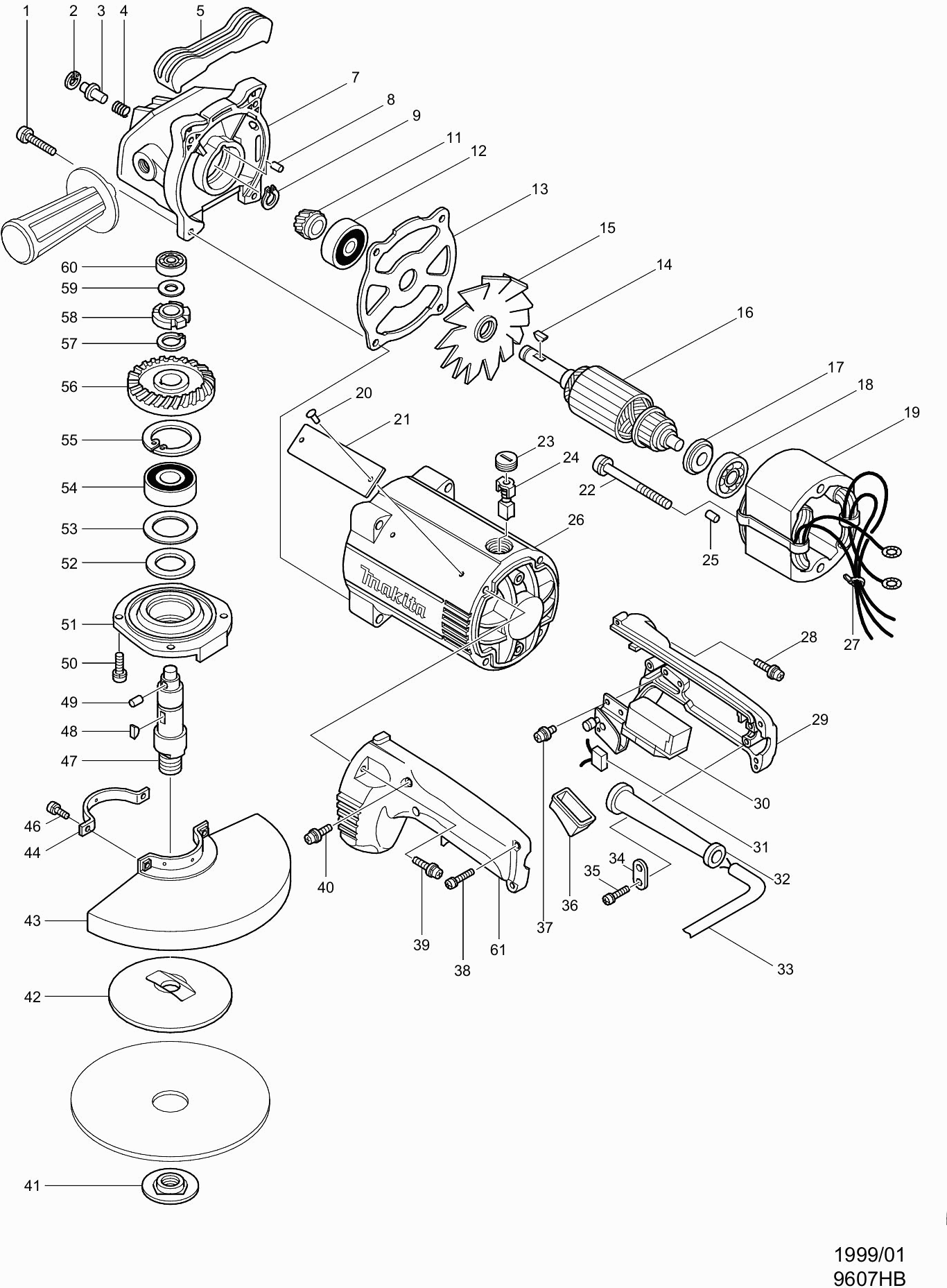 Hier vindt u alle beschikbare onderdelen en tekeningen van de 'Makita 9607HB'. Vanaf hier kunt u direct alle gewenste onderdelen bestellen. Vele onderdelen moeten bij de fabrikant besteld worden, dit duurt afhankelijk van het merk, één tot vier weken. Alle informatie die we hebben, staat op onze website, wij kunnen u geen advies geven over wat u nodig heeft, daarvoor zult u de machine ter reparatie in moeten leveren. Let bij het bestellen op het volgende: