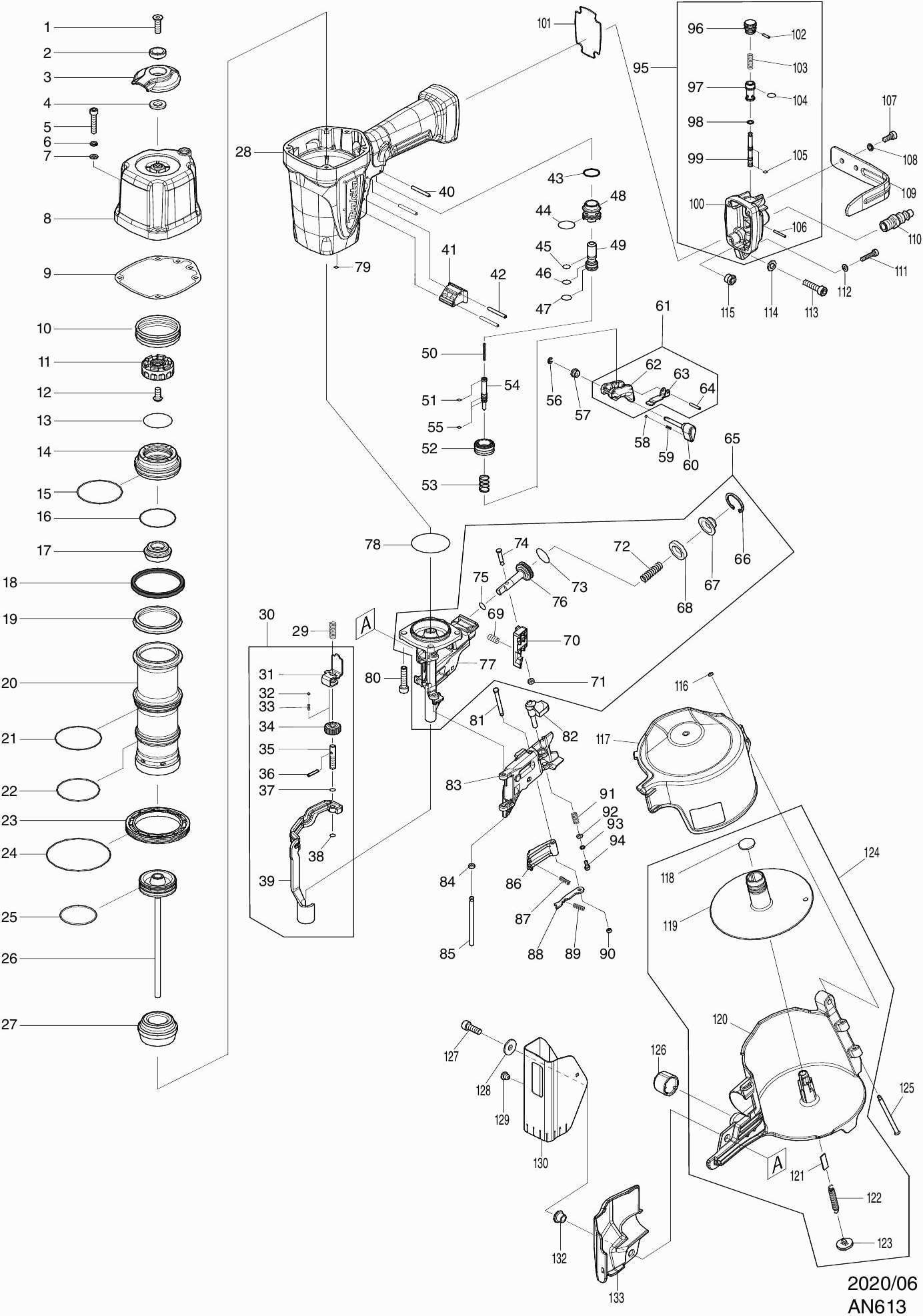 Onderdelen lijst van de Makita AN613