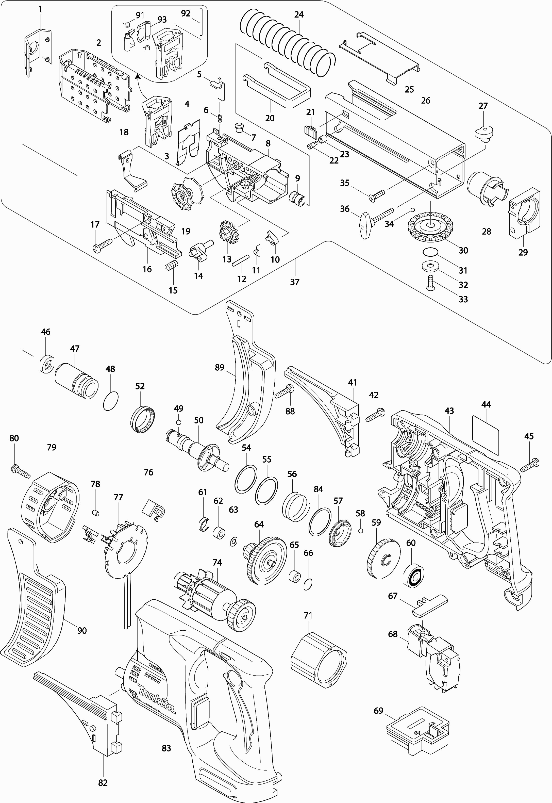Tekeningen van de Makita BFR540