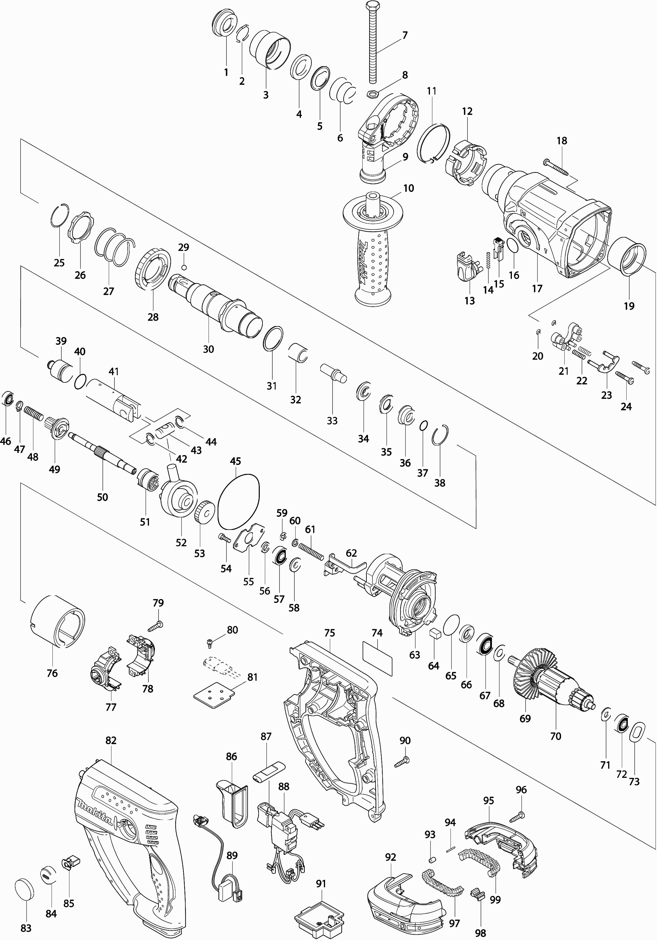 Hier vindt u alle beschikbare onderdelen en tekeningen van de 'Makita BHR202ZX'. Vanaf hier kunt u direct alle gewenste onderdelen bestellen. Vele onderdelen moeten bij de fabrikant besteld worden, dit duurt afhankelijk van het merk, één tot vier weken. Alle informatie die we hebben, staat op onze website, wij kunnen u geen advies geven over wat u nodig heeft, daarvoor zult u de machine ter reparatie in moeten leveren. Let bij het bestellen op het volgende: