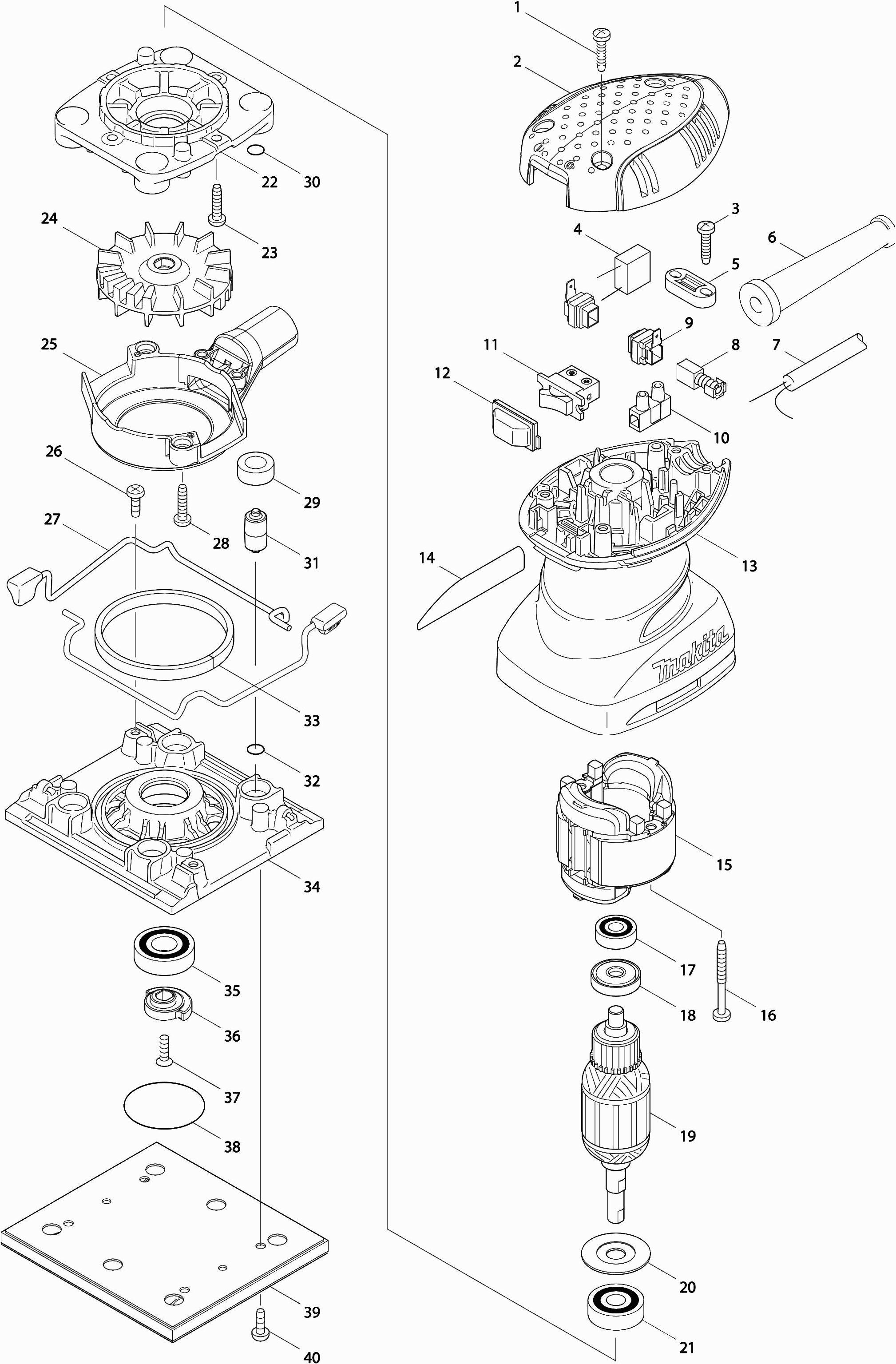 Hier vindt u alle beschikbare onderdelen en tekeningen van de 'Makita BO4556'. Vanaf hier kunt u direct alle gewenste onderdelen bestellen. Vele onderdelen moeten bij de fabrikant besteld worden, dit duurt afhankelijk van het merk, één tot vier weken. Alle informatie die we hebben, staat op onze website, wij kunnen u geen advies geven over wat u nodig heeft, daarvoor zult u de machine ter reparatie in moeten leveren. Let bij het bestellen op het volgende: