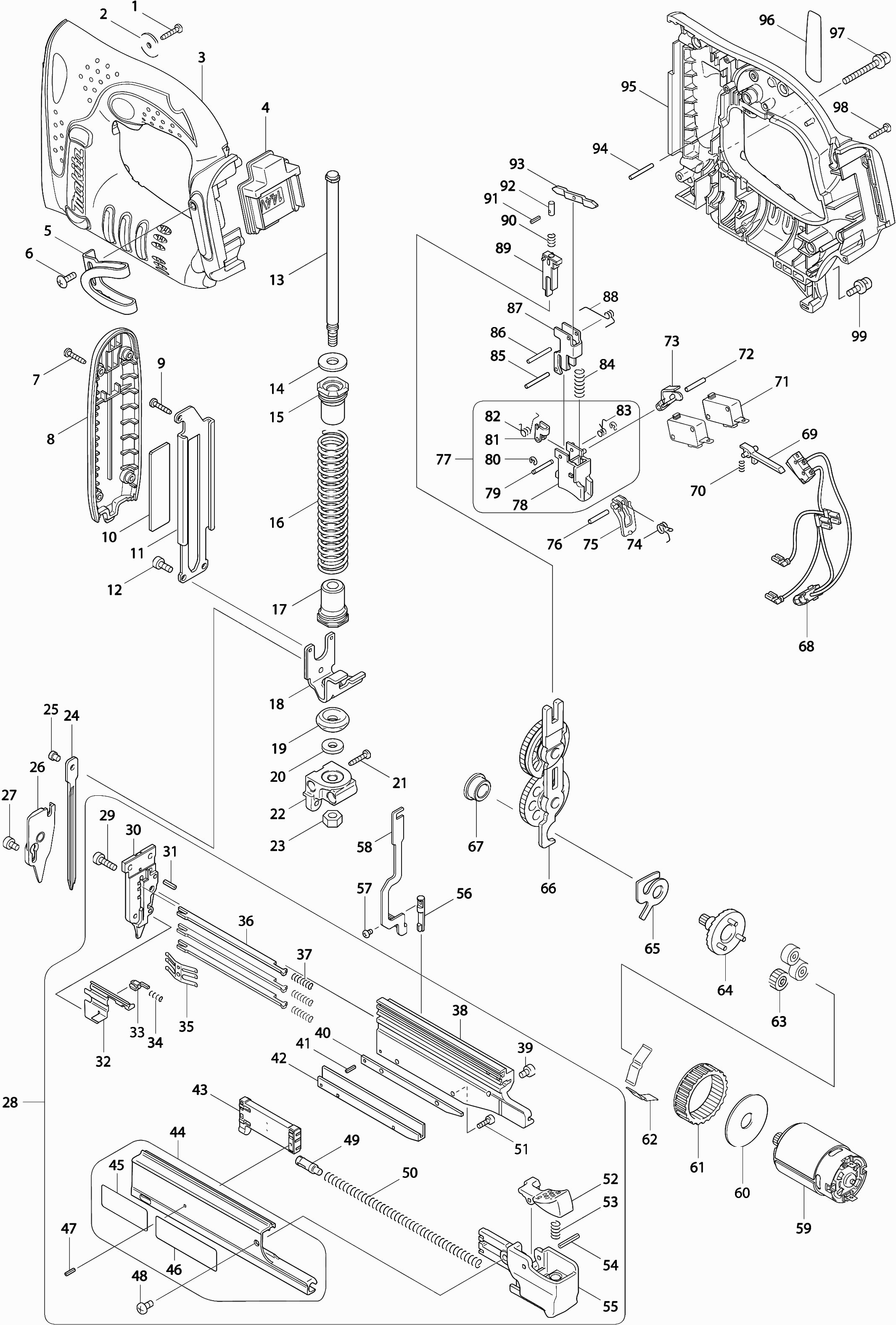 Onderdelen lijst van de Makita BPT350
