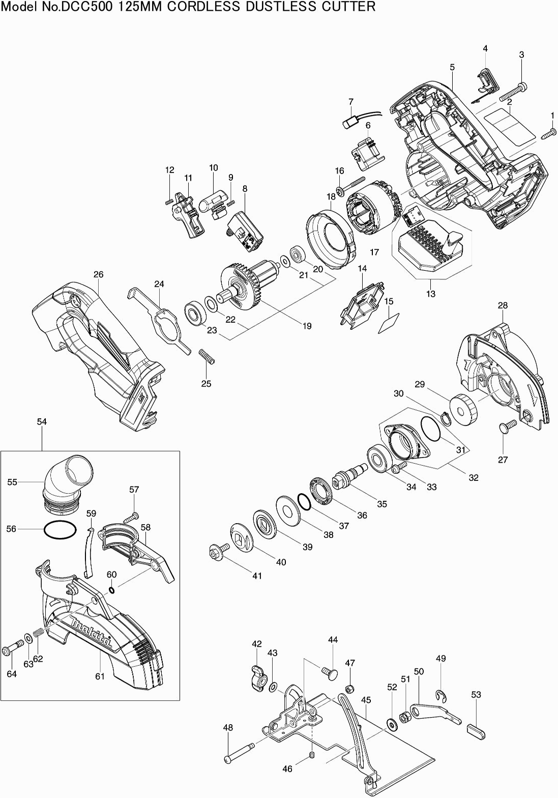 Hier vindt u alle beschikbare onderdelen en tekeningen van de 'Makita DCC500'. Vanaf hier kunt u direct alle gewenste onderdelen bestellen. Vele onderdelen moeten bij de fabrikant besteld worden, dit duurt afhankelijk van het merk, één tot vier weken. Alle informatie die we hebben, staat op onze website, wij kunnen u geen advies geven over wat u nodig heeft, daarvoor zult u de machine ter reparatie in moeten leveren. Let bij het bestellen op het volgende:
