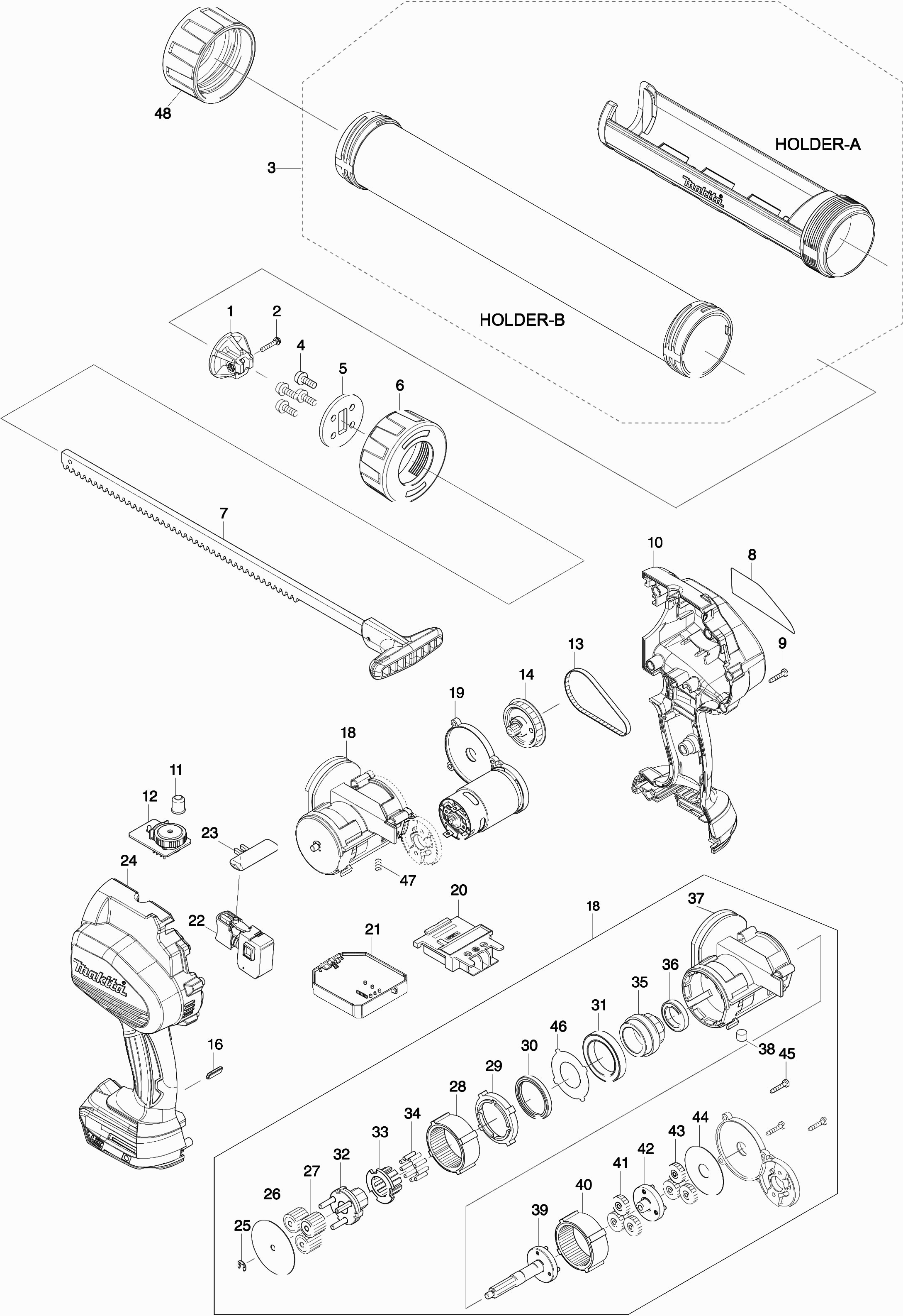 Hier vindt u alle beschikbare onderdelen en tekeningen van de 'Makita DCG140'. Vanaf hier kunt u direct alle gewenste onderdelen bestellen. Vele onderdelen moeten bij de fabrikant besteld worden, dit duurt afhankelijk van het merk, één tot vier weken. Alle informatie die we hebben, staat op onze website, wij kunnen u geen advies geven over wat u nodig heeft, daarvoor zult u de machine ter reparatie in moeten leveren. Let bij het bestellen op het volgende: