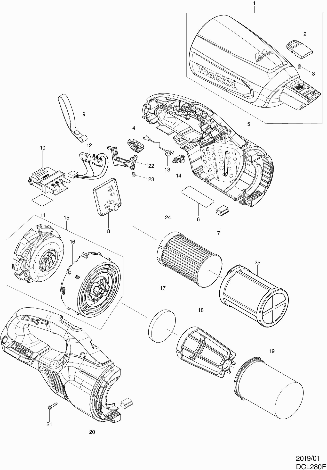 Hier vindt u alle beschikbare onderdelen en tekeningen van de 'Makita DCL280F'. Vanaf hier kunt u direct alle gewenste onderdelen bestellen. Vele onderdelen moeten bij de fabrikant besteld worden, dit duurt afhankelijk van het merk, één tot vier weken. Alle informatie die we hebben, staat op onze website, wij kunnen u geen advies geven over wat u nodig heeft, daarvoor zult u de machine ter reparatie in moeten leveren. Let bij het bestellen op het volgende:
