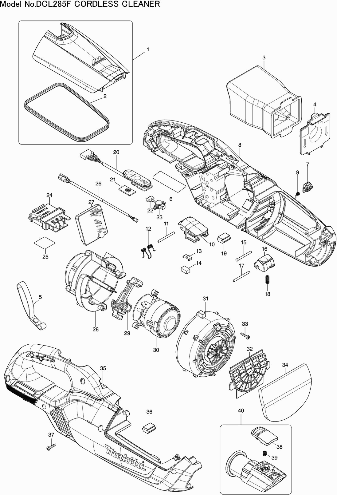 Onderdelen lijst van de Makita DCL285FZ