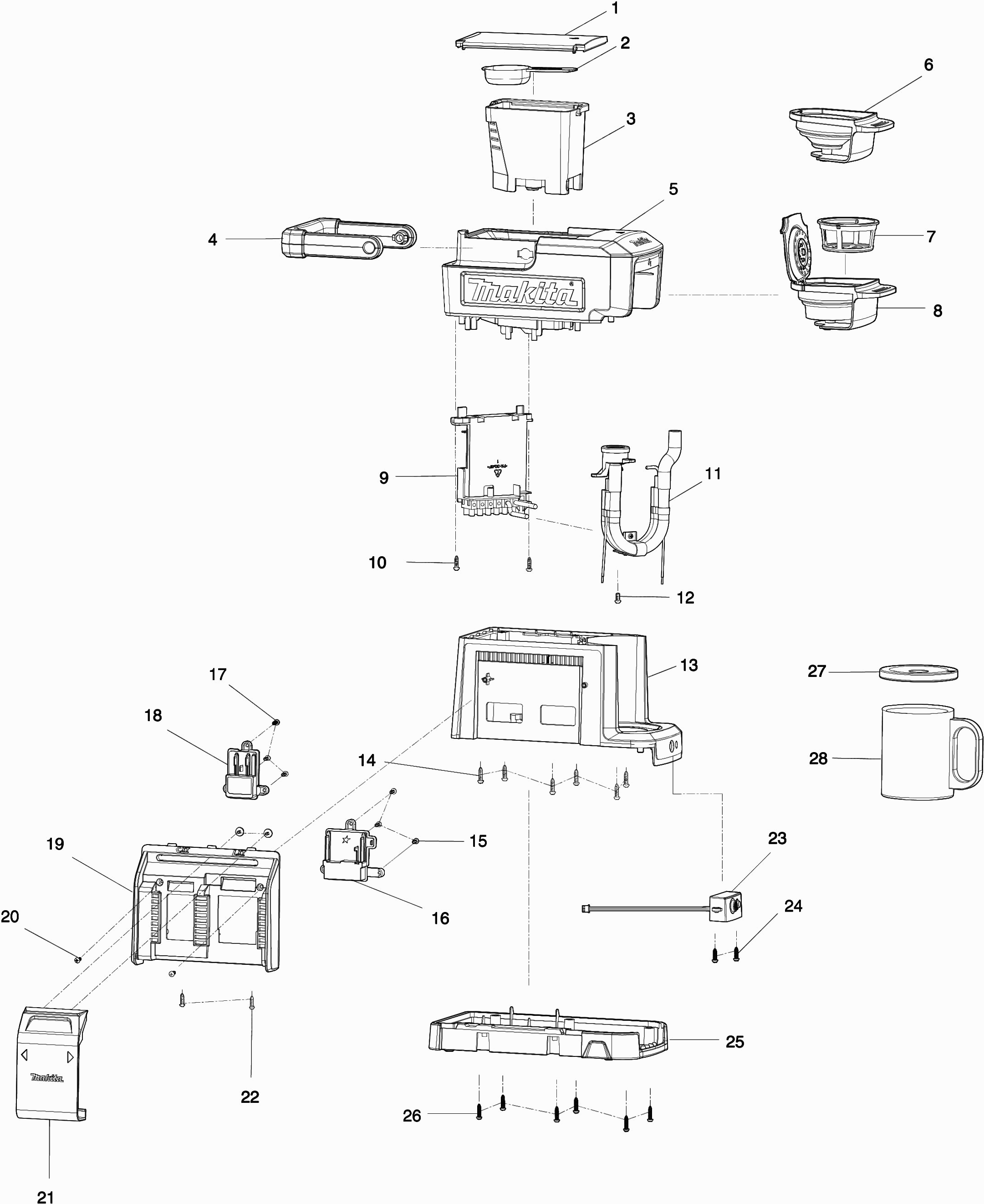 Onderdelen lijst van de Makita DCM501