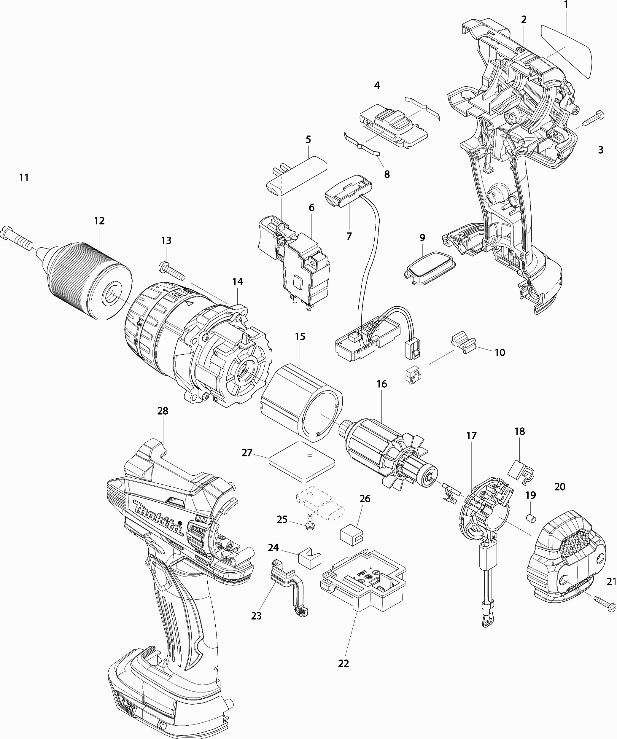 Hier vindt u alle beschikbare onderdelen en tekeningen van de 'Makita DDF448'. Vanaf hier kunt u direct alle gewenste onderdelen bestellen. Vele onderdelen moeten bij de fabrikant besteld worden, dit duurt afhankelijk van het merk, één tot vier weken. Alle informatie die we hebben, staat op onze website, wij kunnen u geen advies geven over wat u nodig heeft, daarvoor zult u de machine ter reparatie in moeten leveren. Let bij het bestellen op het volgende: