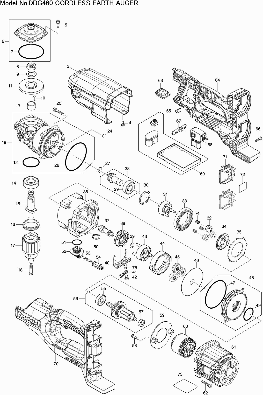 Onderdelen lijst van de Makita DDG460