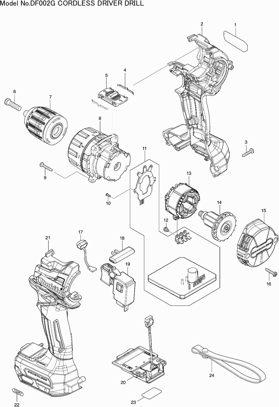 Tekeningen van de Makita DF002G