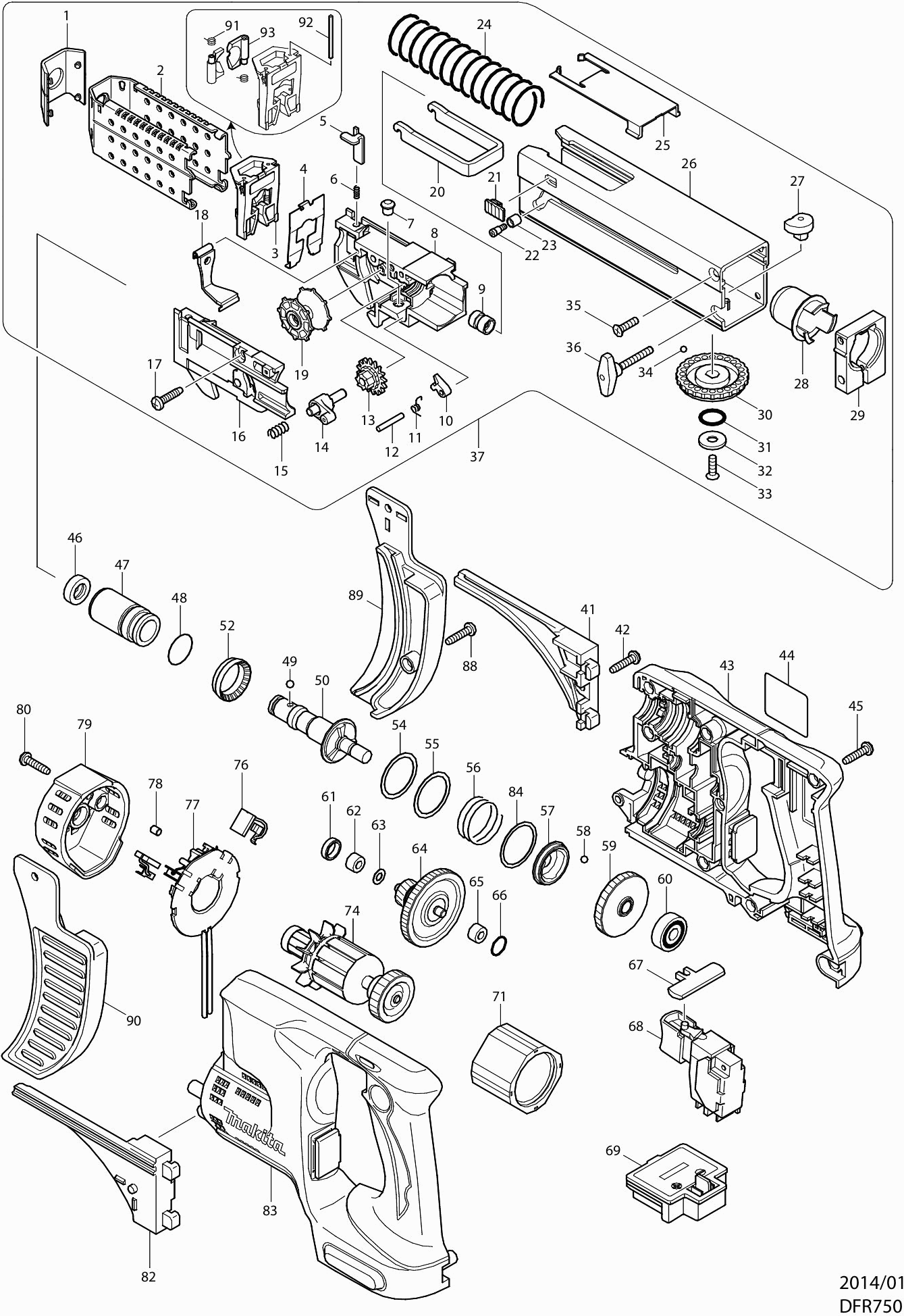 Onderdelen lijst van de Makita DFR750