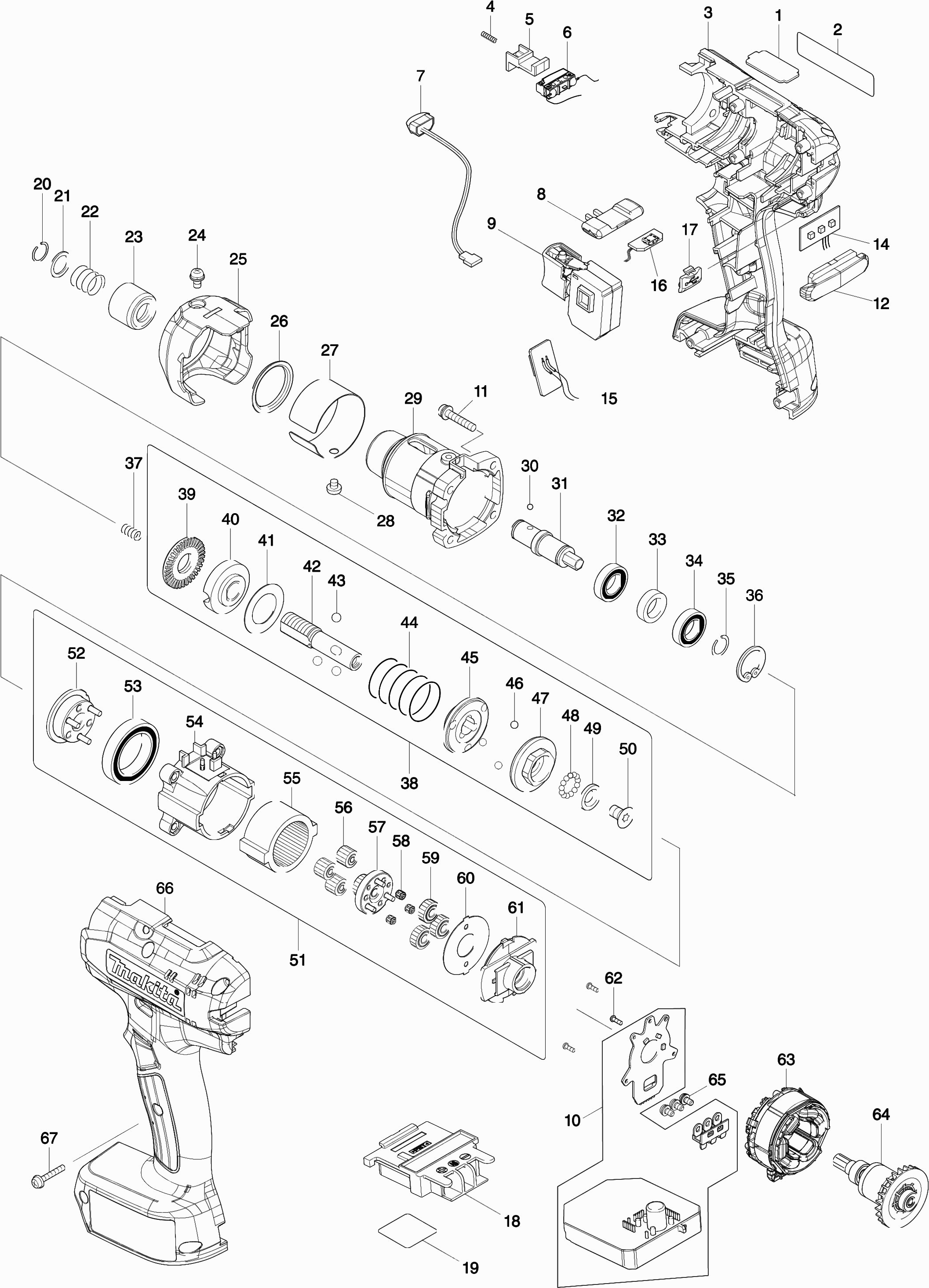 Hier vindt u alle beschikbare onderdelen en tekeningen van de 'Makita DFT127F'. Vanaf hier kunt u direct alle gewenste onderdelen bestellen. Vele onderdelen moeten bij de fabrikant besteld worden, dit duurt afhankelijk van het merk, één tot vier weken. Alle informatie die we hebben, staat op onze website, wij kunnen u geen advies geven over wat u nodig heeft, daarvoor zult u de machine ter reparatie in moeten leveren. Let bij het bestellen op het volgende:
