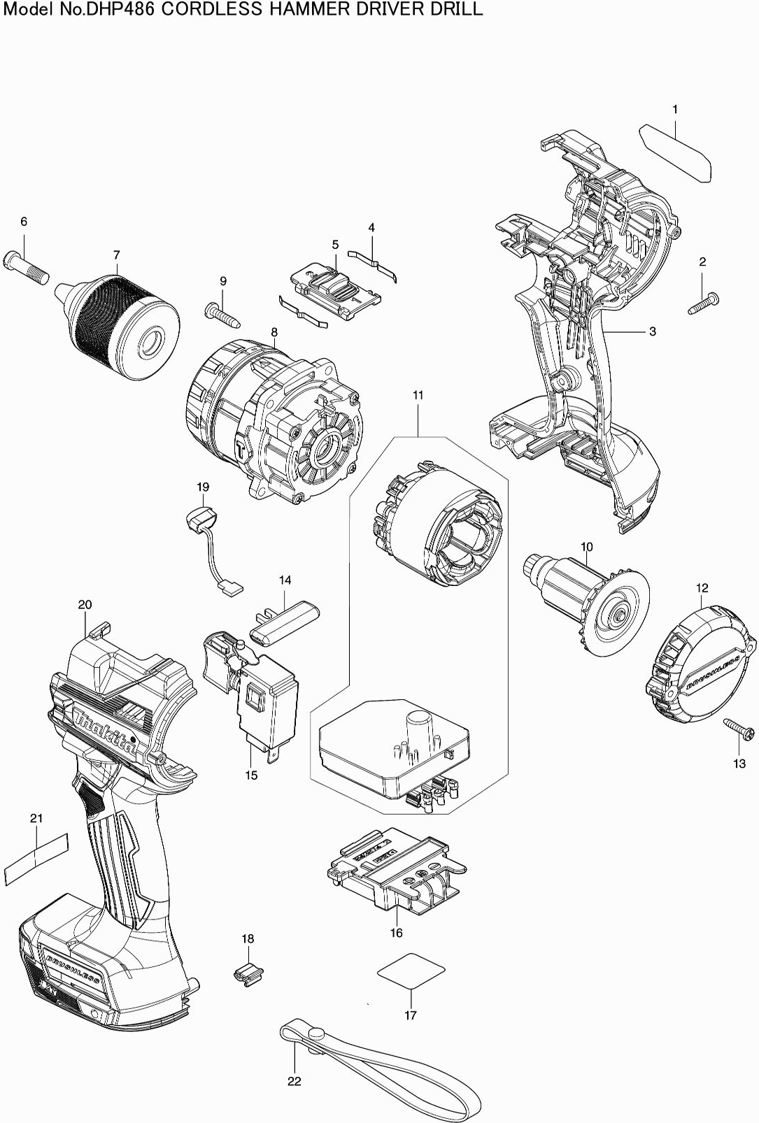 Onderdelen lijst van de Makita DHP486