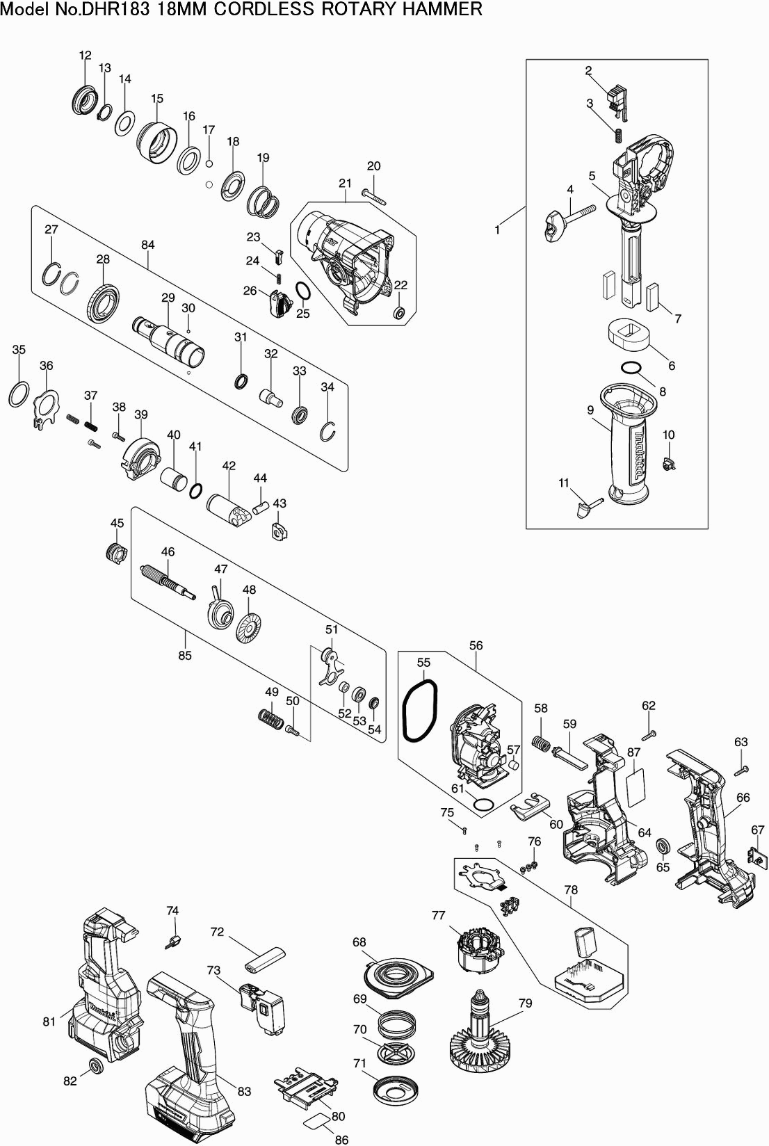 Hier vindt u alle beschikbare onderdelen en tekeningen van de 'Makita DHR183'. Vanaf hier kunt u direct alle gewenste onderdelen bestellen. Vele onderdelen moeten bij de fabrikant besteld worden, dit duurt afhankelijk van het merk, één tot vier weken. Alle informatie die we hebben, staat op onze website, wij kunnen u geen advies geven over wat u nodig heeft, daarvoor zult u de machine ter reparatie in moeten leveren. Let bij het bestellen op het volgende: