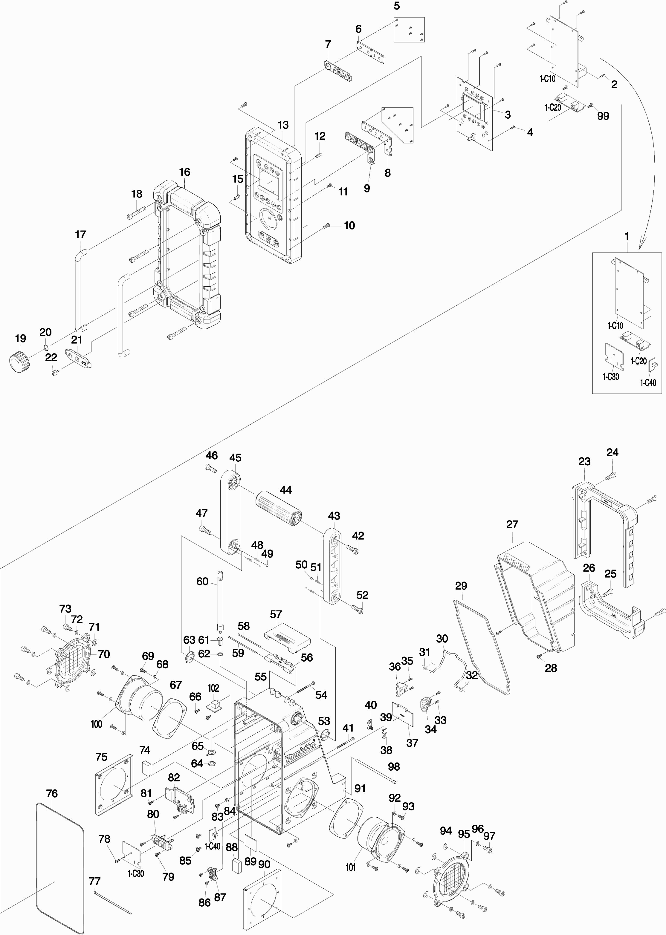 Hier vindt u alle beschikbare onderdelen en tekeningen van de 'Makita DMR102'. Vanaf hier kunt u direct alle gewenste onderdelen bestellen. Vele onderdelen moeten bij de fabrikant besteld worden, dit duurt afhankelijk van het merk, één tot vier weken. Alle informatie die we hebben, staat op onze website, wij kunnen u geen advies geven over wat u nodig heeft, daarvoor zult u de machine ter reparatie in moeten leveren. Let bij het bestellen op het volgende: