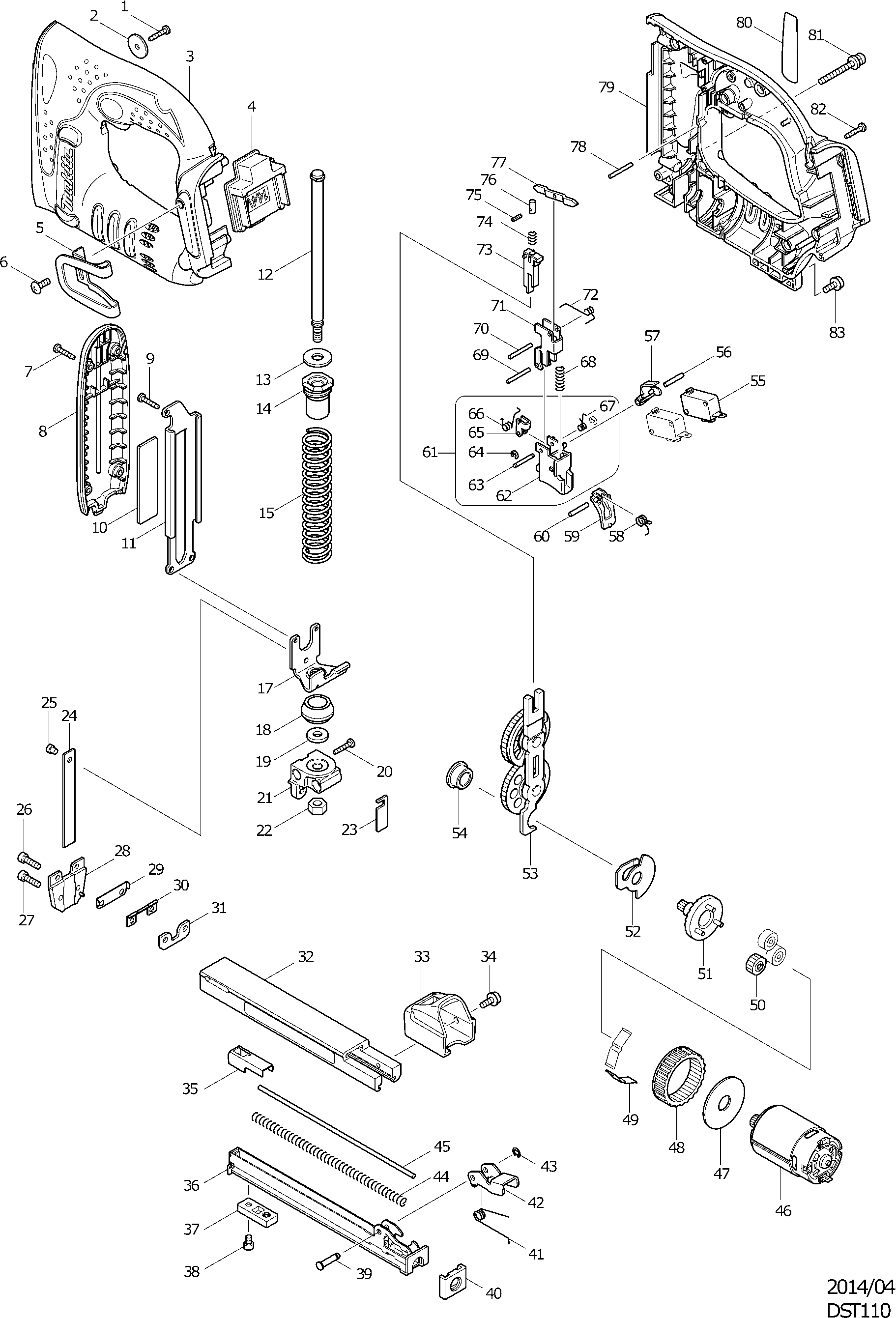 Onderdelen lijst van de Makita DST110