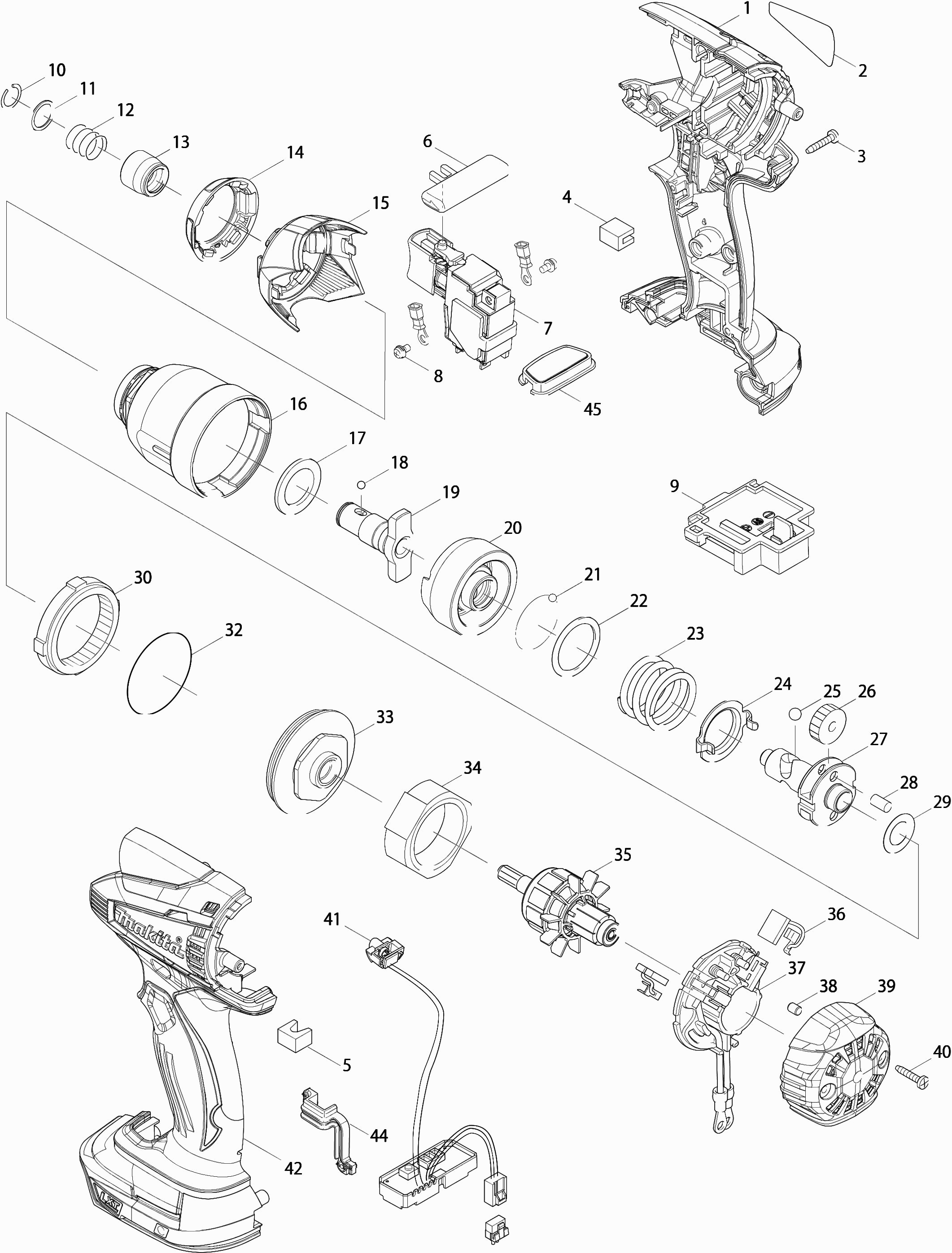 Hier vindt u alle beschikbare onderdelen en tekeningen van de 'Makita DTD134RMJ'. Vanaf hier kunt u direct alle gewenste onderdelen bestellen. Vele onderdelen moeten bij de fabrikant besteld worden, dit duurt afhankelijk van het merk, één tot vier weken. Alle informatie die we hebben, staat op onze website, wij kunnen u geen advies geven over wat u nodig heeft, daarvoor zult u de machine ter reparatie in moeten leveren. Let bij het bestellen op het volgende: