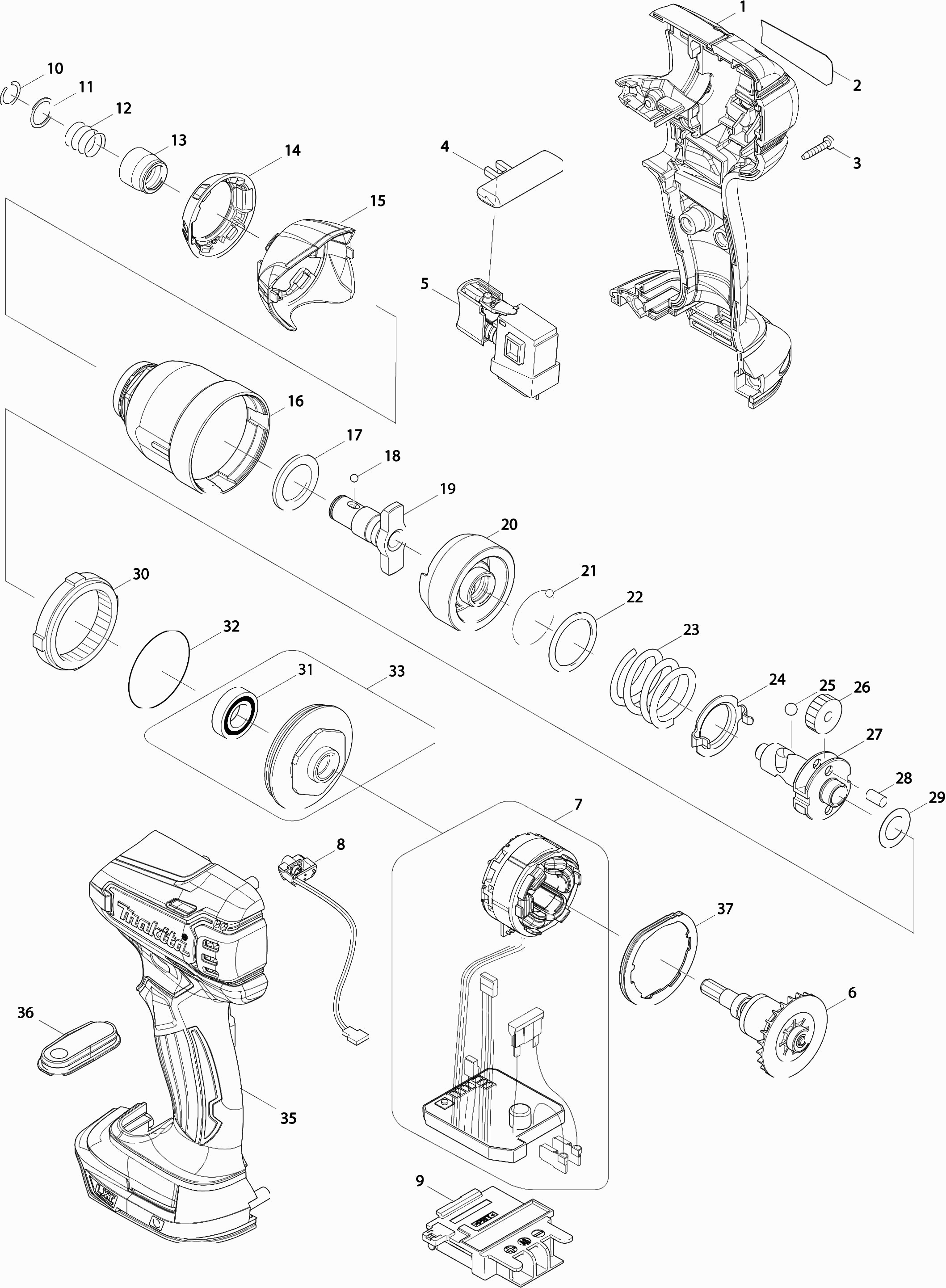 Hier vindt u alle beschikbare onderdelen en tekeningen van de 'Makita DTD147'. Vanaf hier kunt u direct alle gewenste onderdelen bestellen. Vele onderdelen moeten bij de fabrikant besteld worden, dit duurt afhankelijk van het merk, één tot vier weken. Alle informatie die we hebben, staat op onze website, wij kunnen u geen advies geven over wat u nodig heeft, daarvoor zult u de machine ter reparatie in moeten leveren. Let bij het bestellen op het volgende: