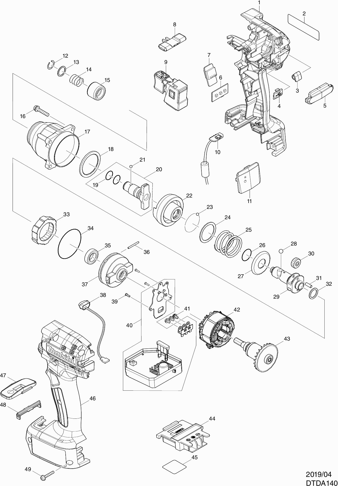 Onderdelen lijst van de Makita DTDA140