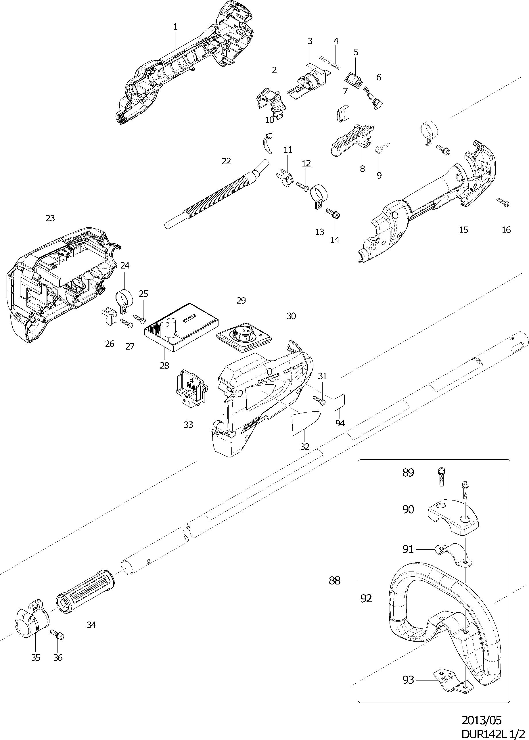 Onderdelen lijst van de Makita DUR142