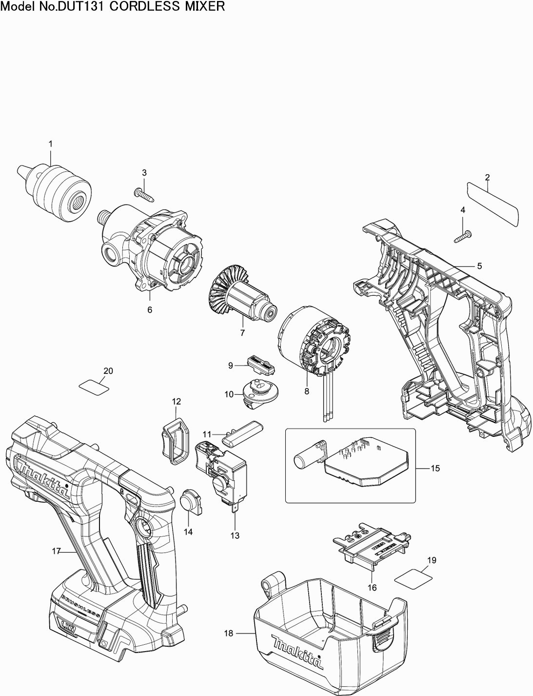 Onderdelen lijst van de Makita DUT131