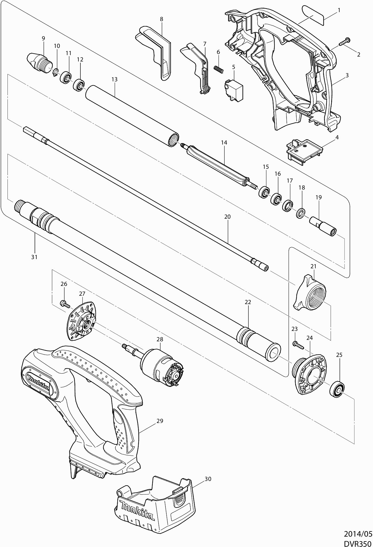 Onderdelen lijst van de Makita DVR350