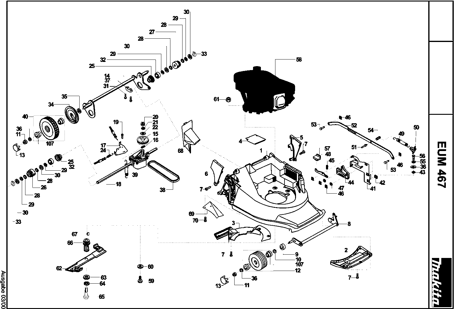 Onderdelen lijst van de Makita EUM467