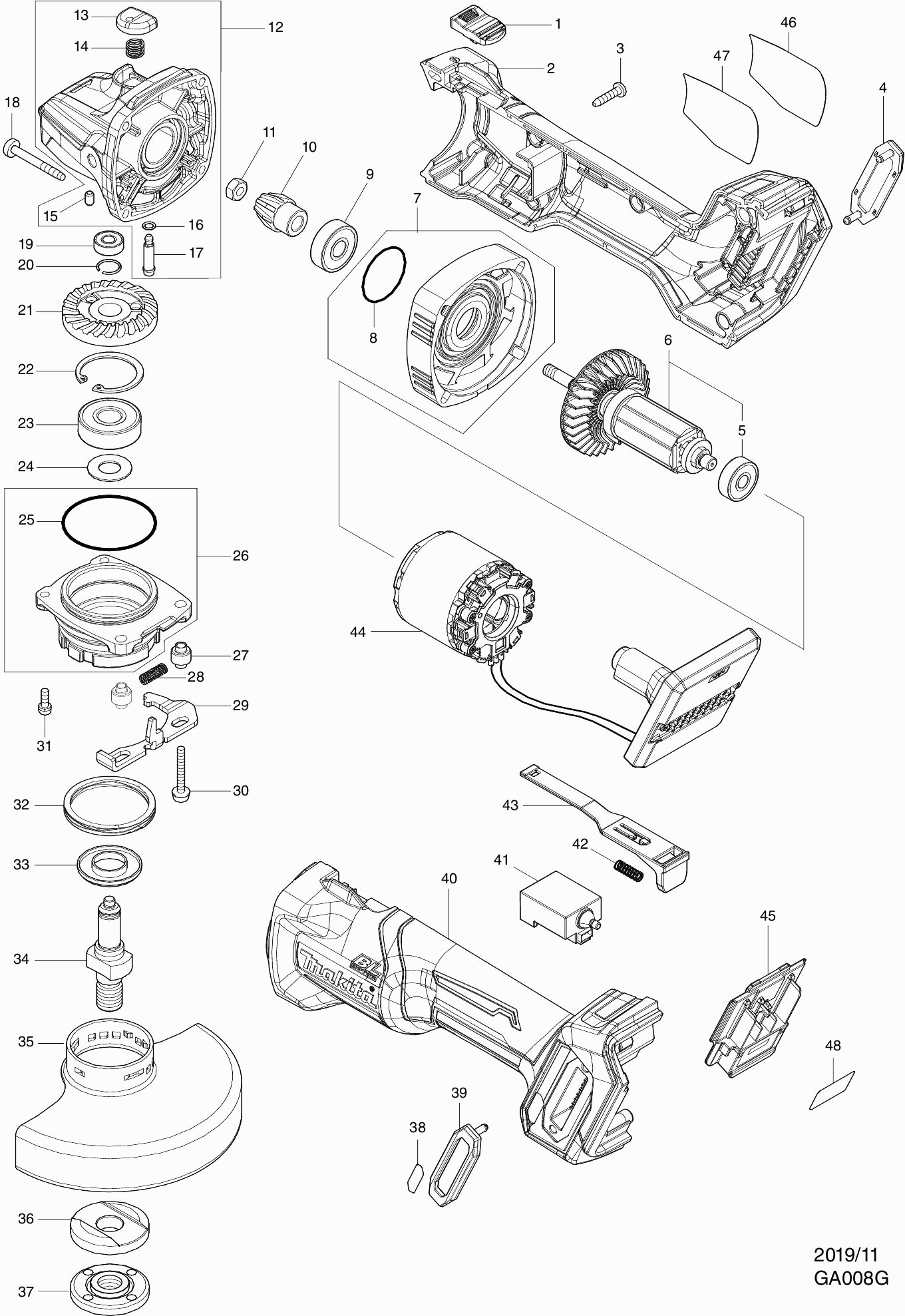 Hier vindt u alle beschikbare onderdelen en tekeningen van de 'Makita GA008G'. Vanaf hier kunt u direct alle gewenste onderdelen bestellen. Vele onderdelen moeten bij de fabrikant besteld worden, dit duurt afhankelijk van het merk, één tot vier weken. Alle informatie die we hebben, staat op onze website, wij kunnen u geen advies geven over wat u nodig heeft, daarvoor zult u de machine ter reparatie in moeten leveren. Let bij het bestellen op het volgende: