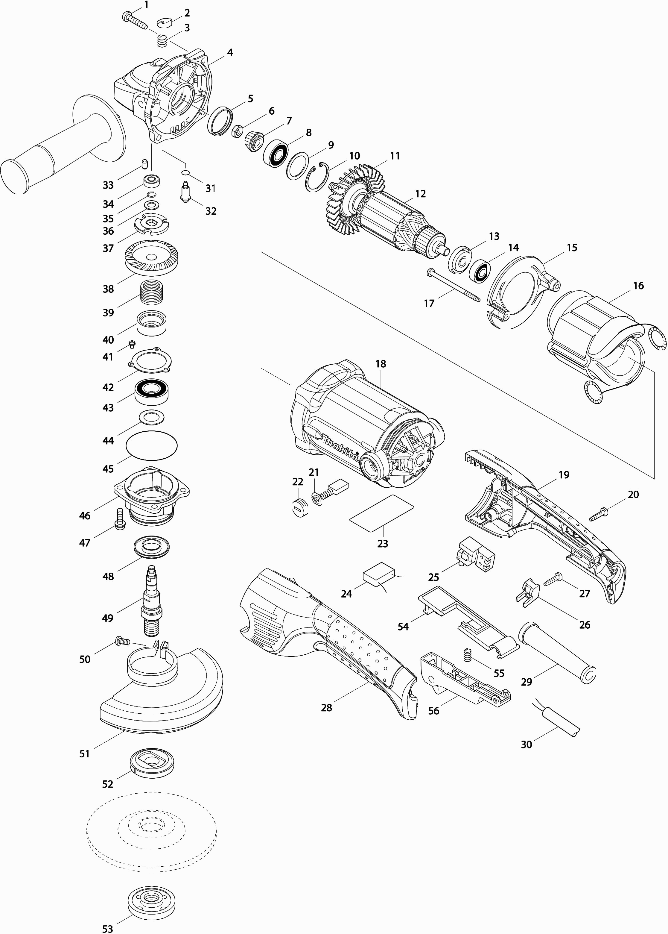 Hier vindt u alle beschikbare onderdelen en tekeningen van de 'Makita GA5021'. Vanaf hier kunt u direct alle gewenste onderdelen bestellen. Vele onderdelen moeten bij de fabrikant besteld worden, dit duurt afhankelijk van het merk, één tot vier weken. Alle informatie die we hebben, staat op onze website, wij kunnen u geen advies geven over wat u nodig heeft, daarvoor zult u de machine ter reparatie in moeten leveren. Let bij het bestellen op het volgende: