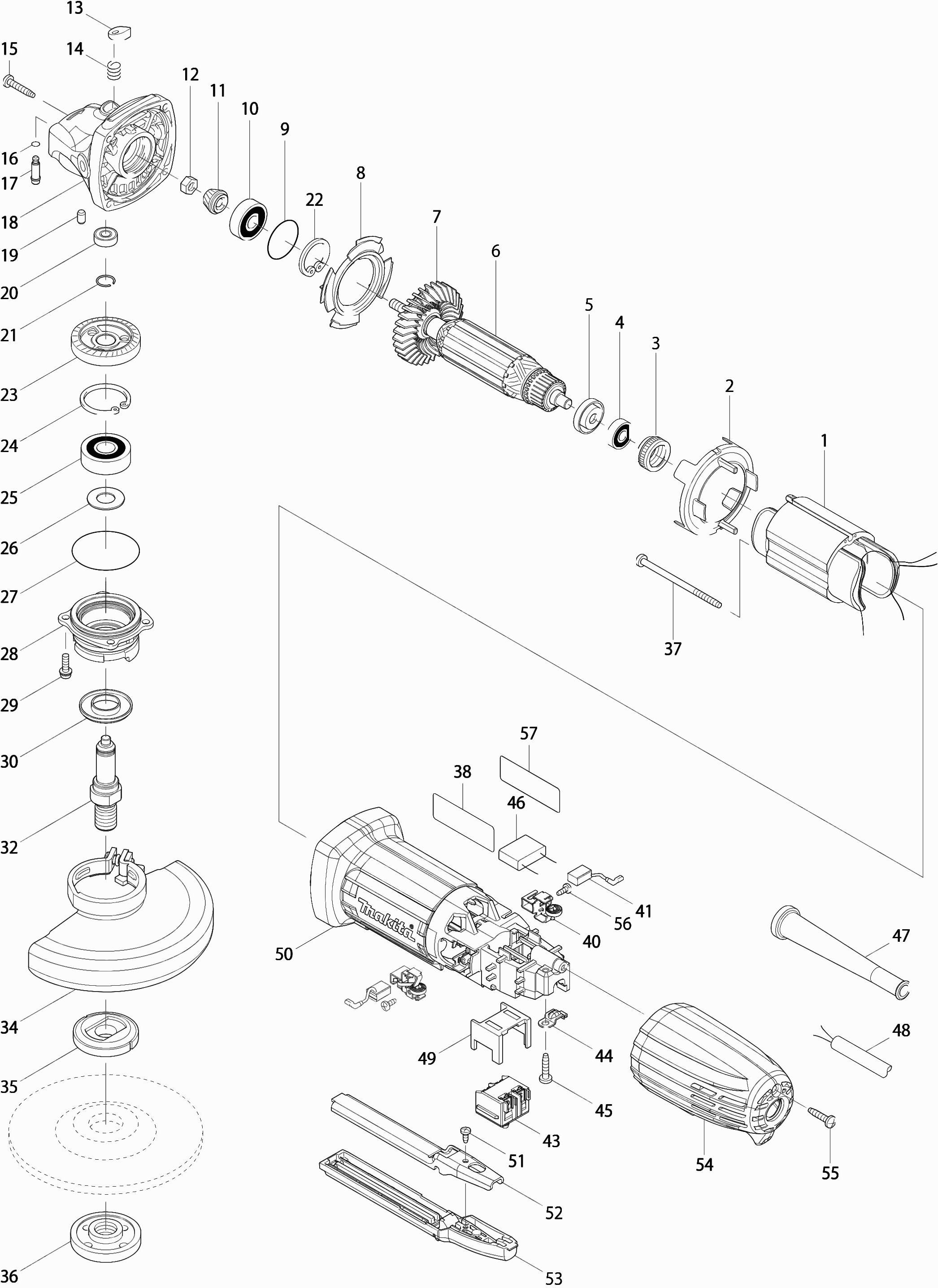 Hier vindt u alle beschikbare onderdelen en tekeningen van de 'Makita GA5034'. Vanaf hier kunt u direct alle gewenste onderdelen bestellen. Vele onderdelen moeten bij de fabrikant besteld worden, dit duurt afhankelijk van het merk, één tot vier weken. Alle informatie die we hebben, staat op onze website, wij kunnen u geen advies geven over wat u nodig heeft, daarvoor zult u de machine ter reparatie in moeten leveren. Let bij het bestellen op het volgende: