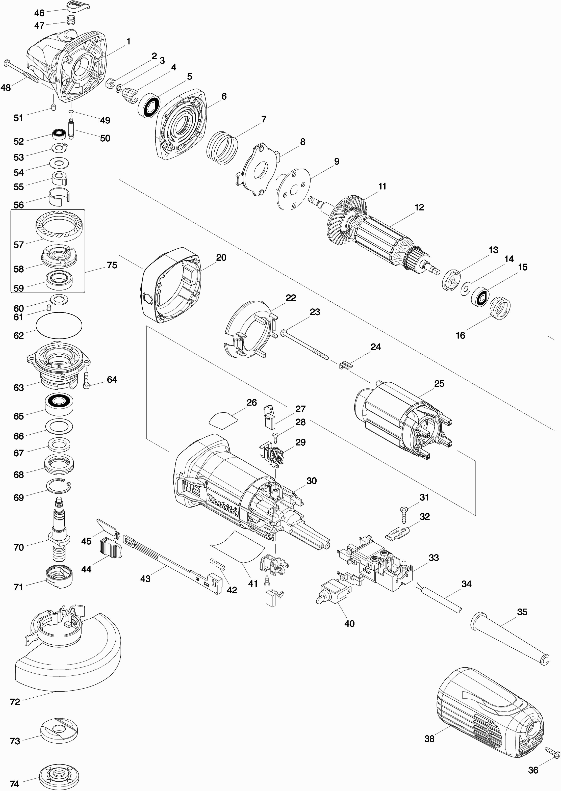 Hier vindt u alle beschikbare onderdelen en tekeningen van de 'Makita GA5041'. Vanaf hier kunt u direct alle gewenste onderdelen bestellen. Vele onderdelen moeten bij de fabrikant besteld worden, dit duurt afhankelijk van het merk, één tot vier weken. Alle informatie die we hebben, staat op onze website, wij kunnen u geen advies geven over wat u nodig heeft, daarvoor zult u de machine ter reparatie in moeten leveren. Let bij het bestellen op het volgende: