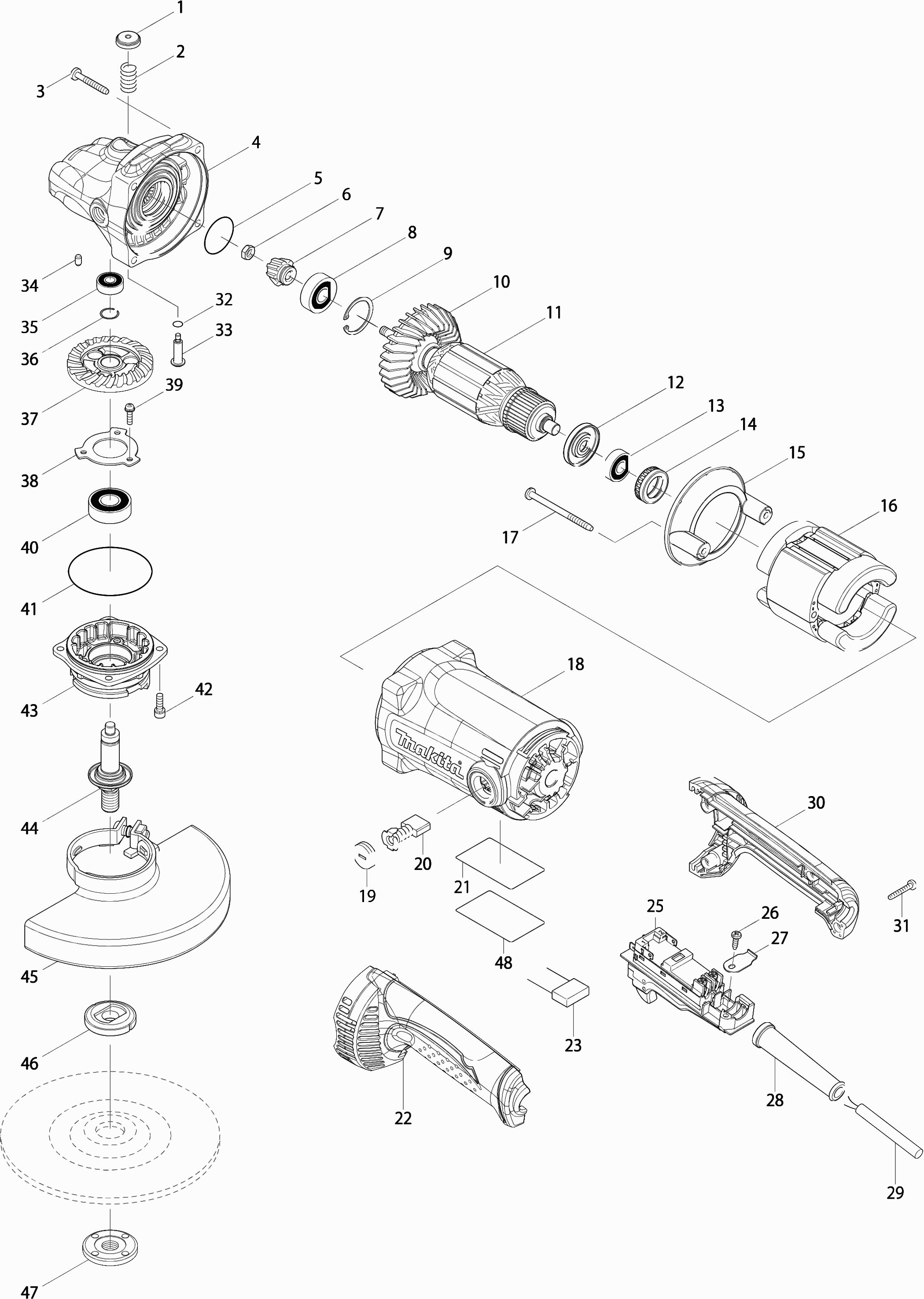 Hier vindt u alle beschikbare onderdelen en tekeningen van de 'Makita GA7050'. Vanaf hier kunt u direct alle gewenste onderdelen bestellen. Vele onderdelen moeten bij de fabrikant besteld worden, dit duurt afhankelijk van het merk, één tot vier weken. Alle informatie die we hebben, staat op onze website, wij kunnen u geen advies geven over wat u nodig heeft, daarvoor zult u de machine ter reparatie in moeten leveren. Let bij het bestellen op het volgende: