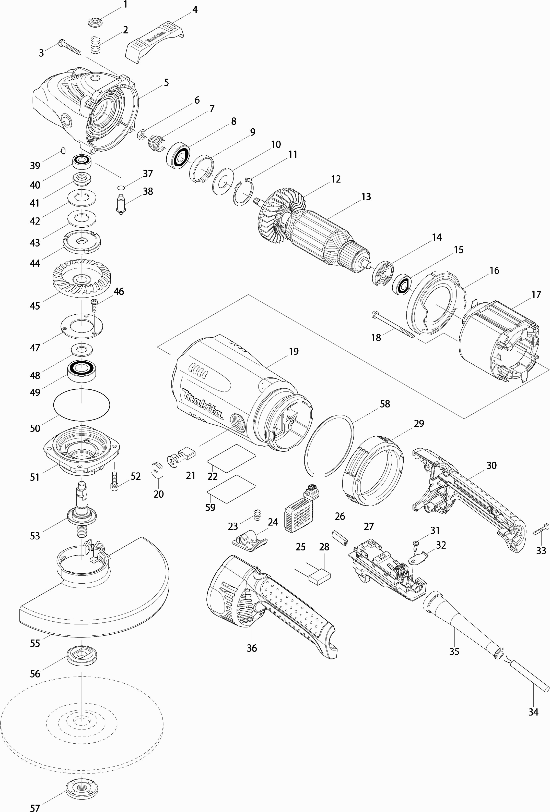 Hier vindt u alle beschikbare onderdelen en tekeningen van de 'Makita GA9040R'. Vanaf hier kunt u direct alle gewenste onderdelen bestellen. Vele onderdelen moeten bij de fabrikant besteld worden, dit duurt afhankelijk van het merk, één tot vier weken. Alle informatie die we hebben, staat op onze website, wij kunnen u geen advies geven over wat u nodig heeft, daarvoor zult u de machine ter reparatie in moeten leveren. Let bij het bestellen op het volgende: