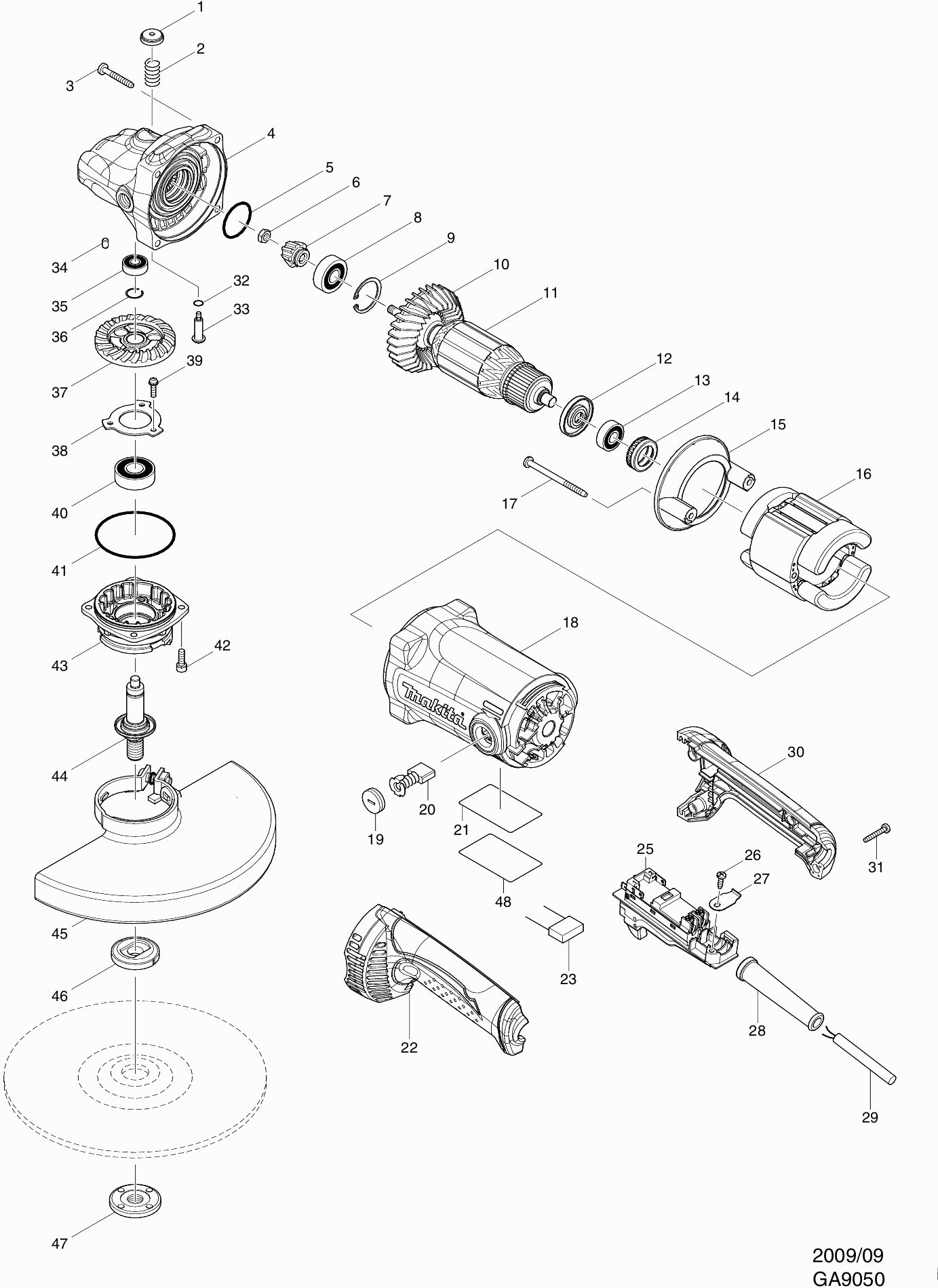 Hier vindt u alle beschikbare onderdelen en tekeningen van de 'Makita GA9050'. Vanaf hier kunt u direct alle gewenste onderdelen bestellen. Vele onderdelen moeten bij de fabrikant besteld worden, dit duurt afhankelijk van het merk, één tot vier weken. Alle informatie die we hebben, staat op onze website, wij kunnen u geen advies geven over wat u nodig heeft, daarvoor zult u de machine ter reparatie in moeten leveren. Let bij het bestellen op het volgende: