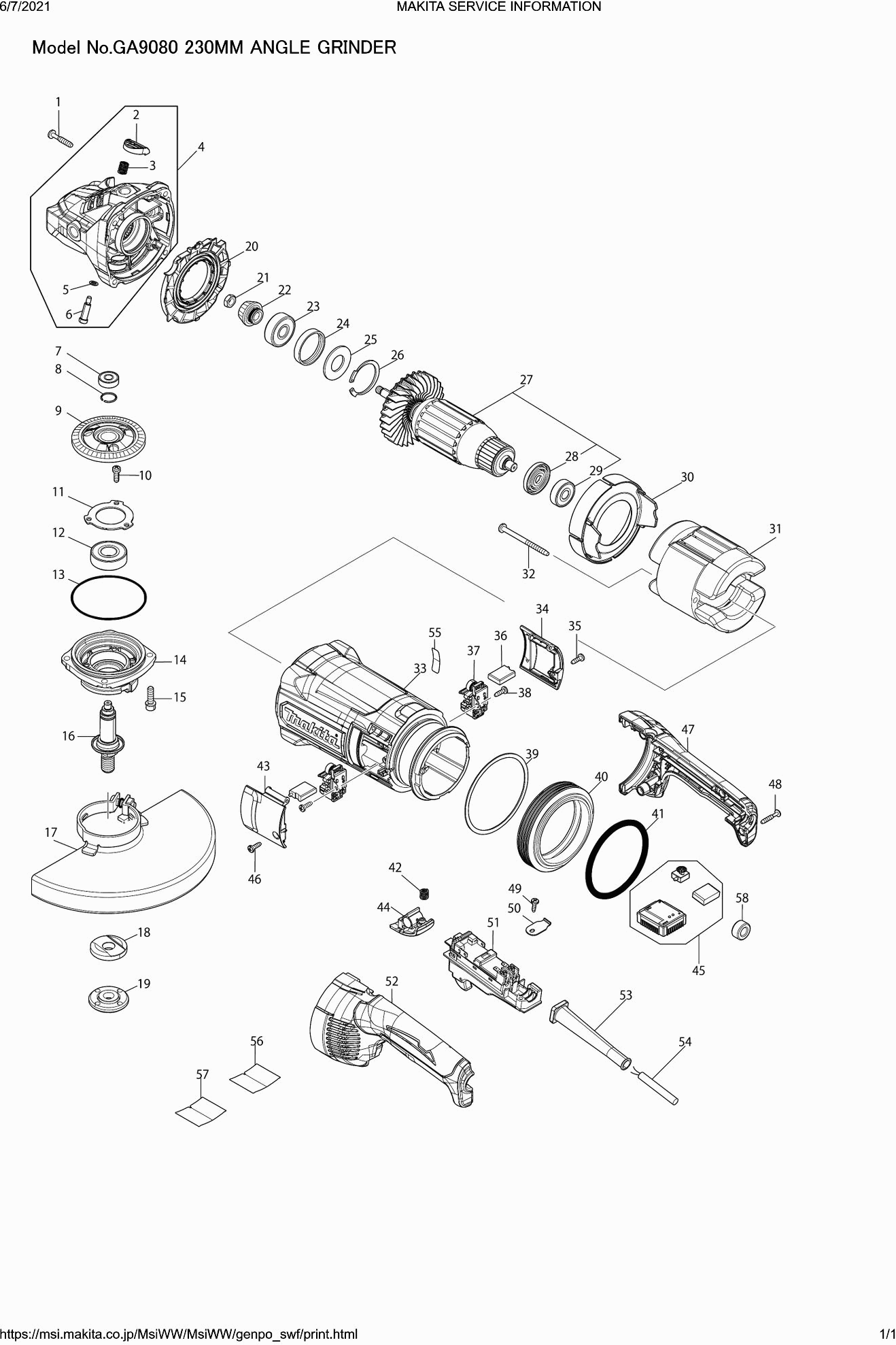 Hier vindt u alle beschikbare onderdelen en tekeningen van de 'Makita GA9080'. Vanaf hier kunt u direct alle gewenste onderdelen bestellen. Vele onderdelen moeten bij de fabrikant besteld worden, dit duurt afhankelijk van het merk, één tot vier weken. Alle informatie die we hebben, staat op onze website, wij kunnen u geen advies geven over wat u nodig heeft, daarvoor zult u de machine ter reparatie in moeten leveren. Let bij het bestellen op het volgende:
